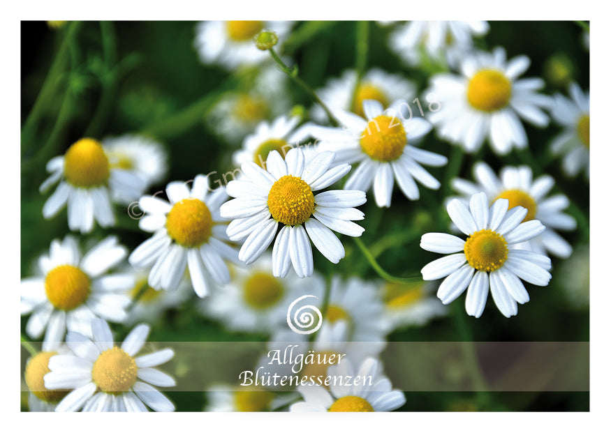 Die Allgäuer Blütenessenz Kamille (Matricaria chamomilla) hilft Dir Geborgenheit zu spüren.