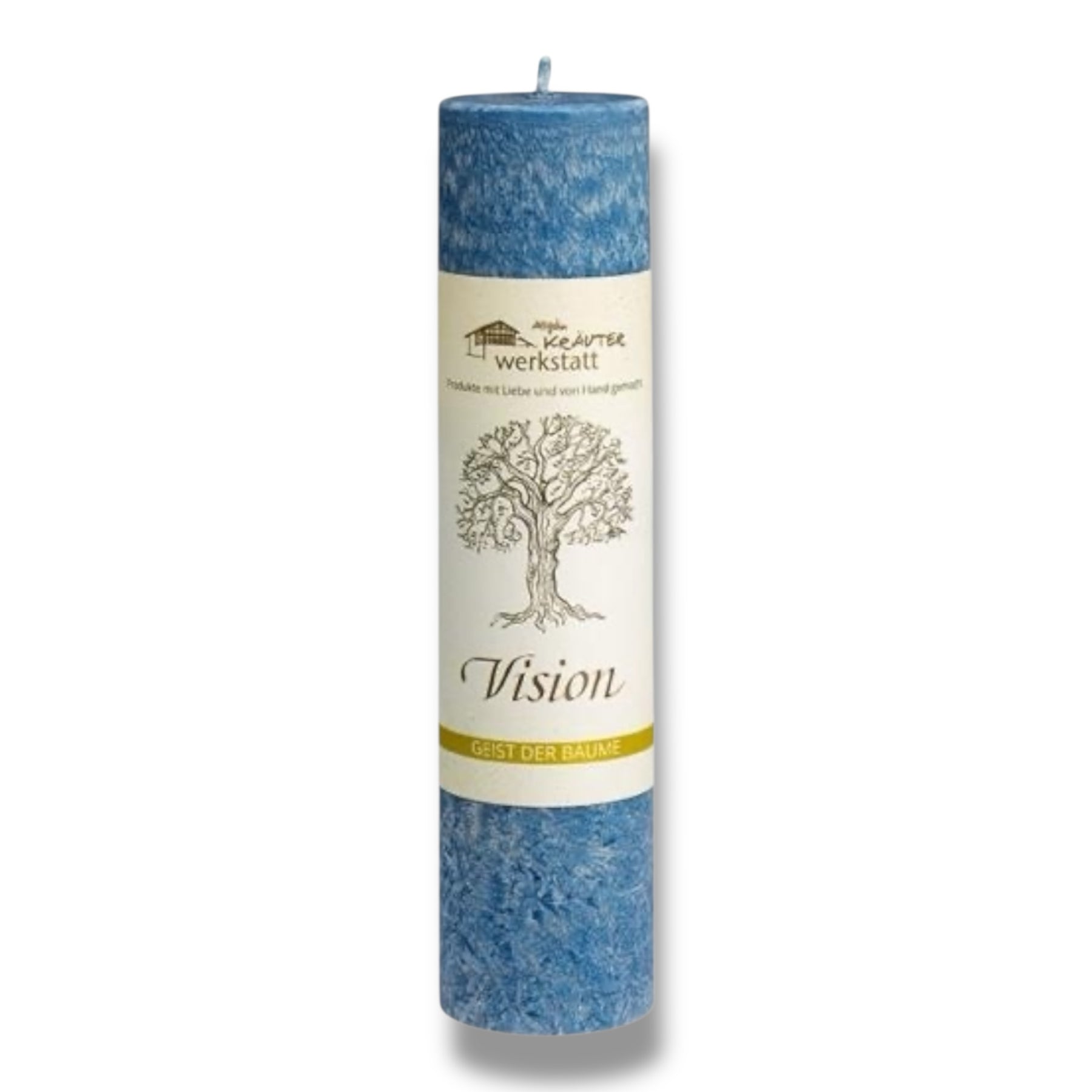 Die Allgäuer Heilkräuterkerze Vision unterstützt Dich beim visionären Denken. Die Tanne ist die Königin des Waldes, mit starken Wurzeln und einer sich nach oben öffnenden Krone. In ihr birgt sich die Vision vom intakten zukünftigen Wald. In der bestehenden Struktur des alten Waldes bildet sie tiefe Wurzeln und Stabilität. Die Tanne wartet mit Aufrichtigkeit und Klarheit auf den richtigen Zeitpunkt. Gut zentriert, geerdet und mit Zielstrebigkeit sorgt sie dann für Wachstum nach oben und außen und bildet so den Schutz und die Basis für den neuen Wald.