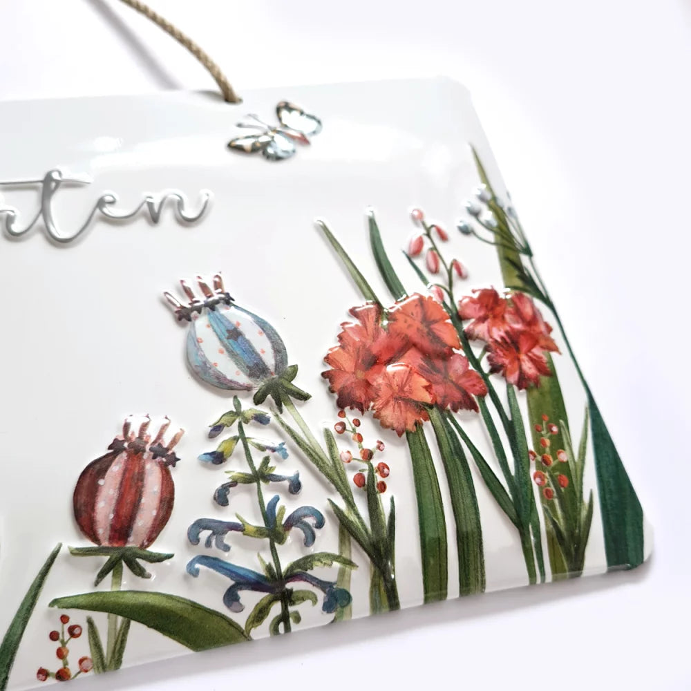 Das Blechschild "Bin im Garten!“ ist von der Künstlerin Silke Leffler illustriert. Ein wunderschönes Hinweis- oder Dekoschild für Dich und Deine Besucher. So weiss jeder deiner Liebste, sogleich, dass Du Dich an deinem Lieblingsort, Deinem Garten befindest. Ein Accessoires für Dein Heim oder eine schöne Geschenkidee. Ergänzende Geschenkideen der Serie findest Du unter dem Stichwort: Mohnwiese