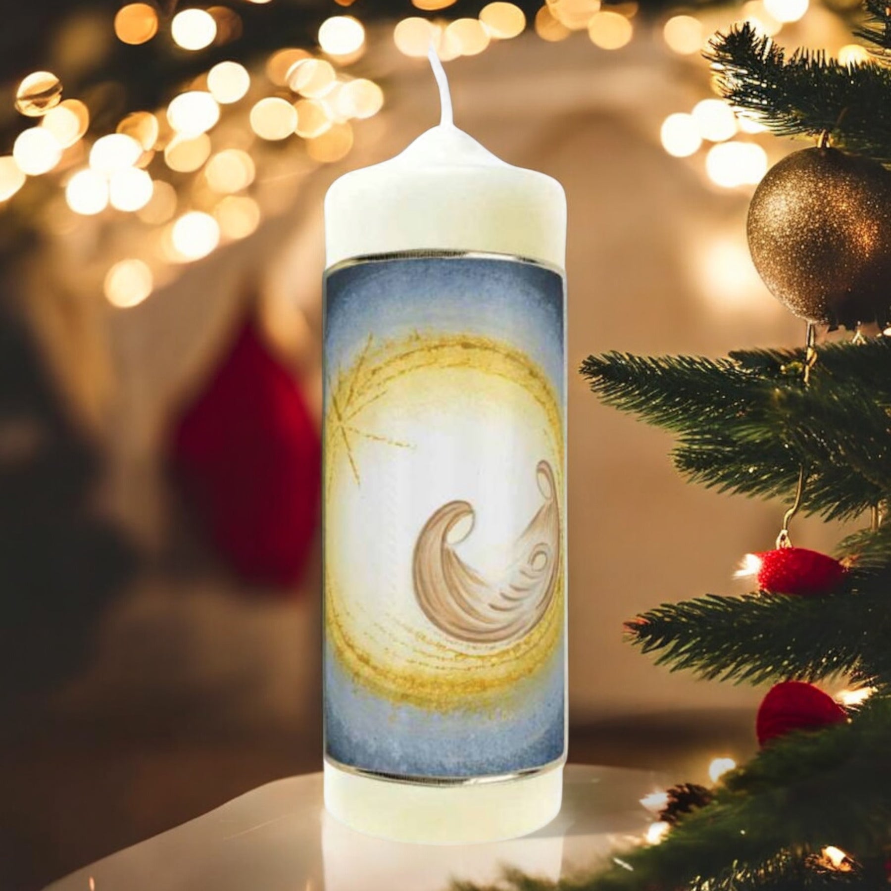 Gottes Licht erhellt das Dunkel – Diese schlichte und dennoch eindrucksvolle Kerze symbolisiert das göttliche Licht, das die Dunkelheit vertreibt. Das zarte Motiv und die harmonischen Farben laden zur Besinnung ein und schenken Hoffnung und Trost in der Advents- und Weihnachtszeit. Mit ihrer langen Brenndauer ist sie ein treuer Begleiter für Stunden der Stille und des Gebets.