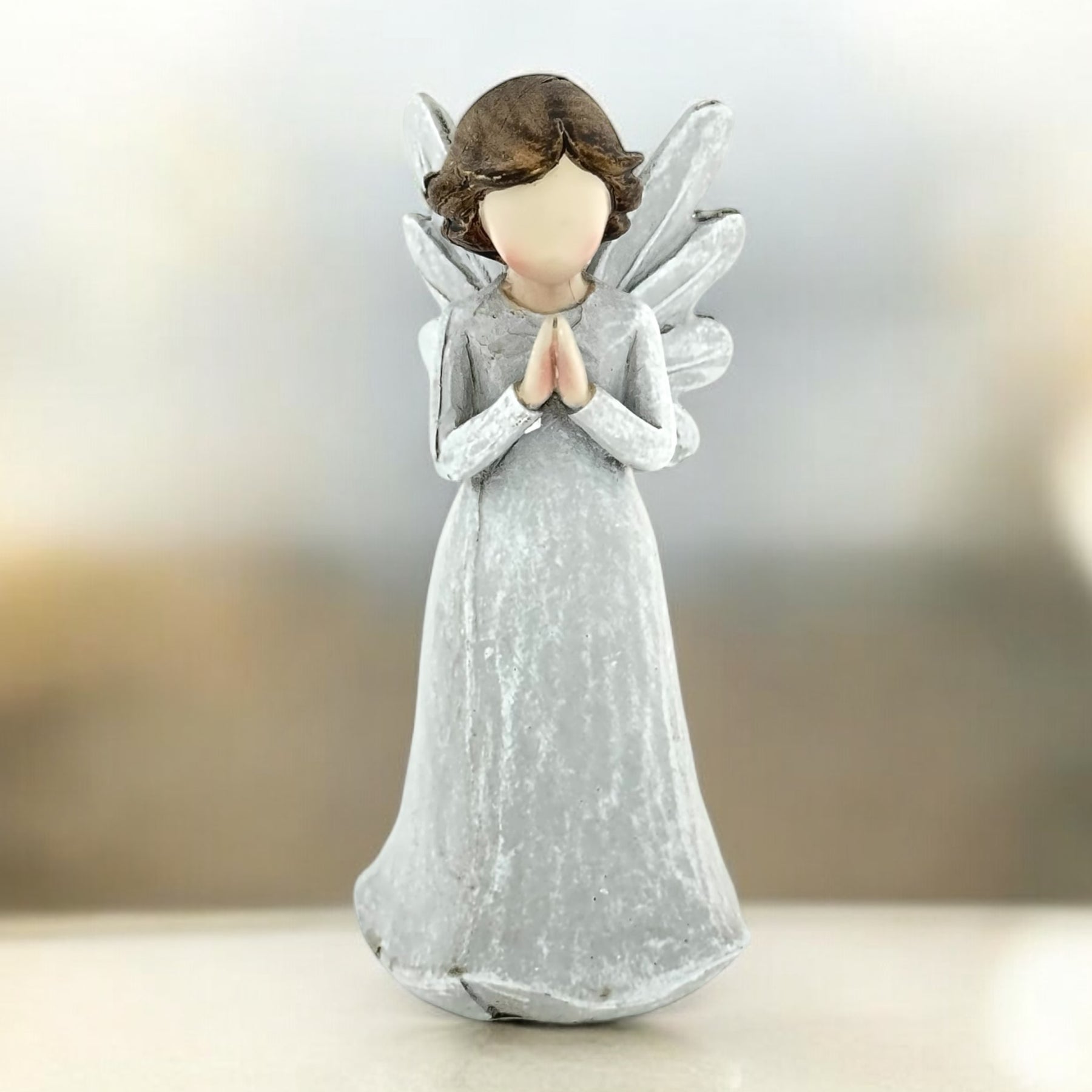 Dieser wunderschöne Schutzengel betend aus silbrig zartem Gips steht dir stets bei und bietet dir Schutz. Dieser Engel ein echter Hingucker und eine symbolische Erinnerung an innere Einkehr. Wähle zwischen 6, 9 und 12 cm Größe.
