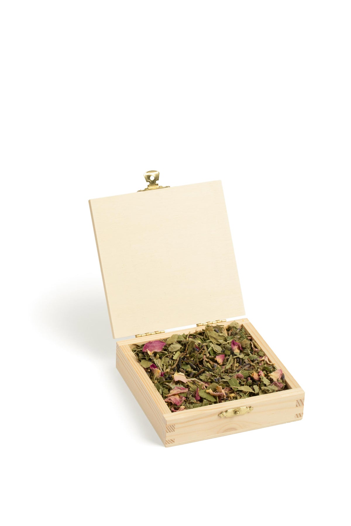 Rosenblüten, Mariengras, Schafgarbe, Birke, Brombeerblättern, Frauenmantel, Storax