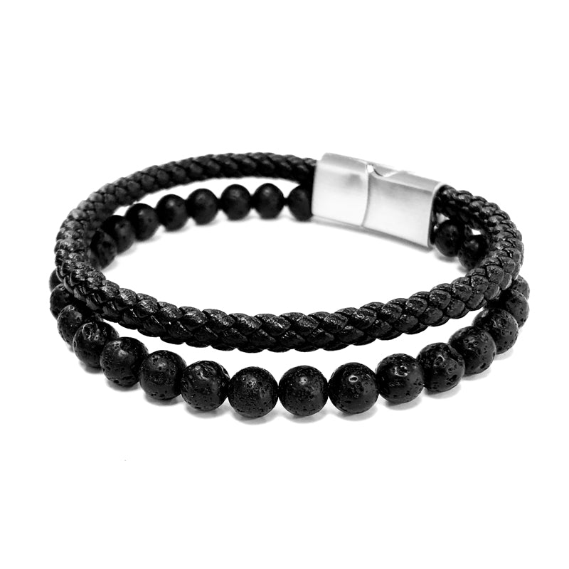 Frank 1967 Armband | Echt Leder | schwarz | Lavastein Edelstahl