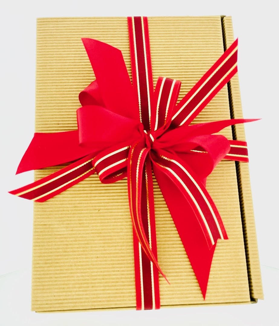 Kleine Geschenkbox in Natura, hergestellt aus naturbelassener offener Wellpappe. Innenmaße (L x B x H): 22 x 14,9 x 7,5 cm. Perfekt passend für zwei Allgäuer Heilkräuterkerzen.