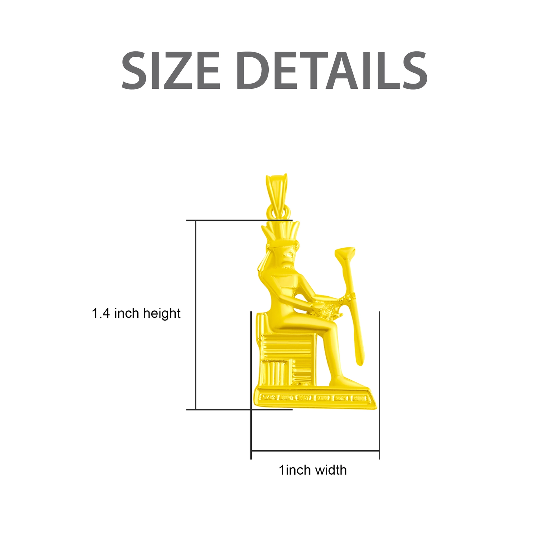 Dieser vergoldete Gott Amon auf dem Thron Anhänger ist ein atemberaubendes Schmuckstück. Es zeigt einen detaillierten Amon auf einem Thron, der die Macht und das Prestige des altägyptischen Gottes symbolisiert. Maße: 3,5 cm Höhe x 2,5 cm Breite Der Anhänger wird ohne Kette geliefert. Material: Messing, vergoldet