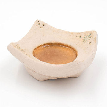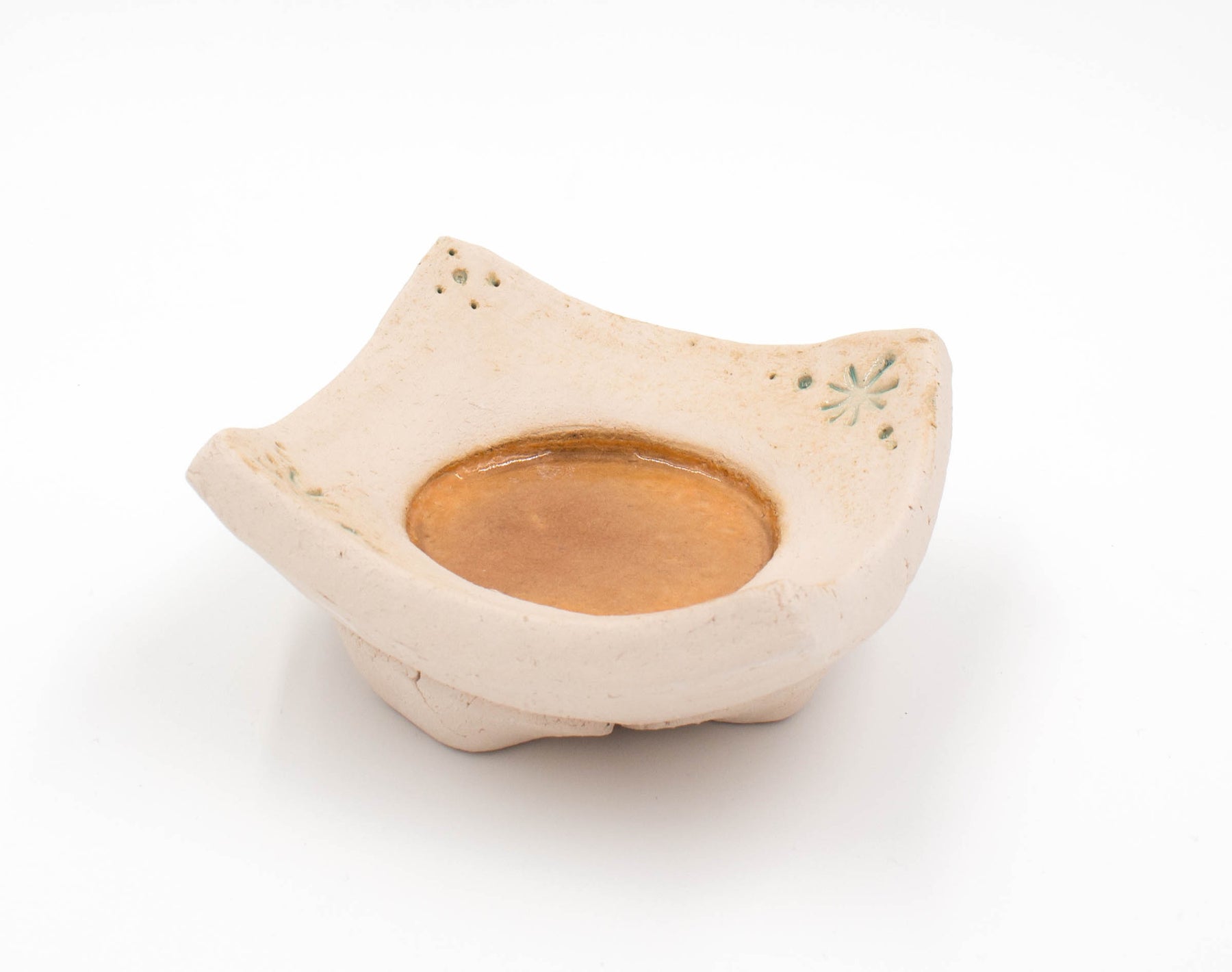 Er ist feuerfest gebrannt, die schönen Farbakzente entstehen durch die Verwendung einer besonderen Glasur.