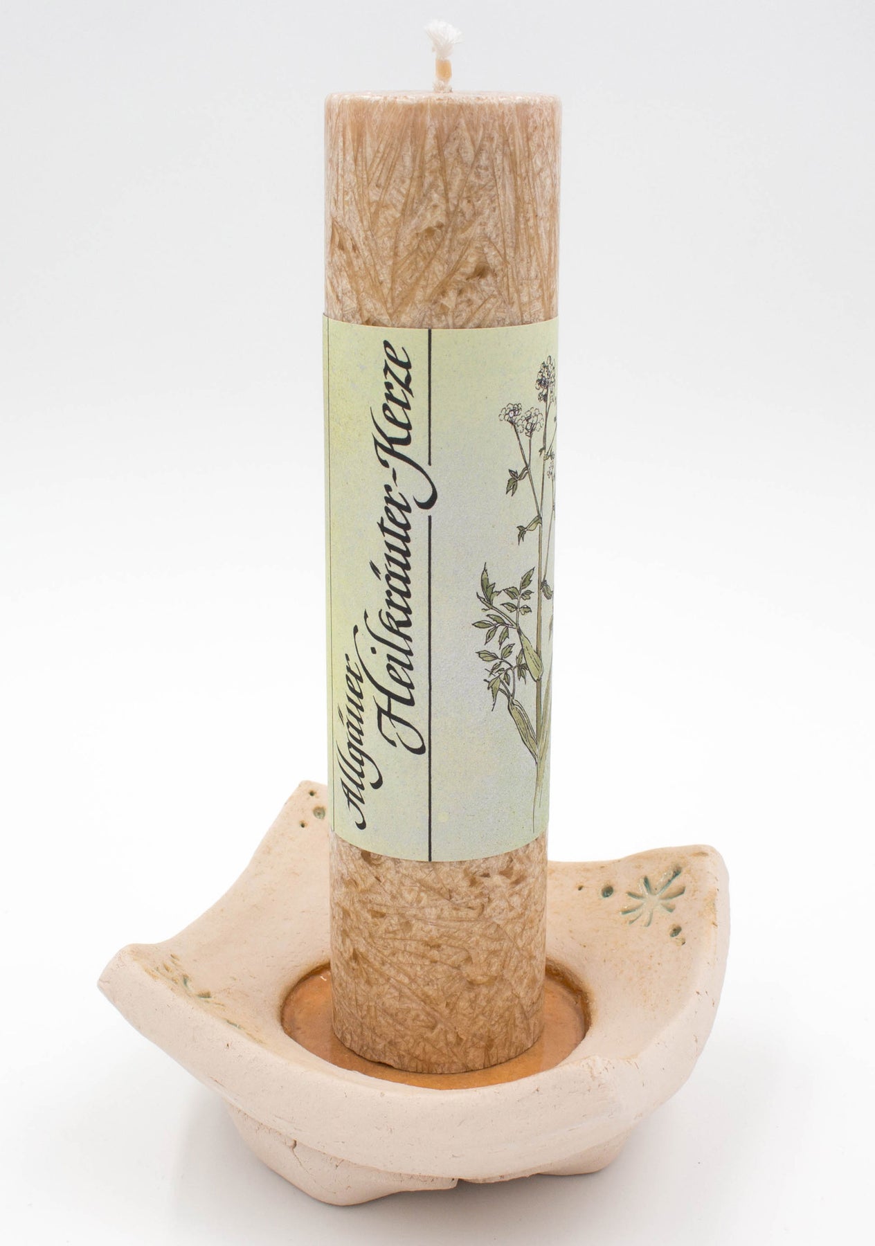 Dieser Untersetzer ist geeignet für die Allgäuer Heilkräuterkerze, wie im Beispielbild abgebildet. Der Halter wird ohne Kerze geliefert.