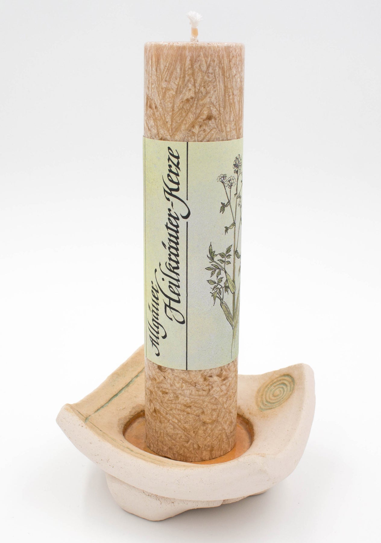 Dieser Untersetzer ist geeignet für die Allgäuer Heilkräuterkerze, wie im Beispielbild abgebildet. Der Halter wird ohne Kerze geliefert.