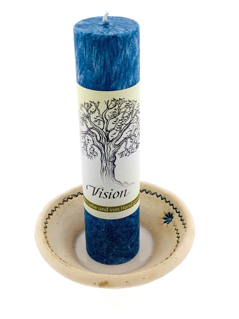 Die Kerzenuntersetzer werden exklusiv für die Manufaktur mit viel Herzblut und komplett von Hand in einer kleinen Manufaktur im Allgäu gefertigt. Sie sind feuerfest gebrannt, die schönen Farbakzente entstehen durch die Verwendung einer besonderen Glasur.