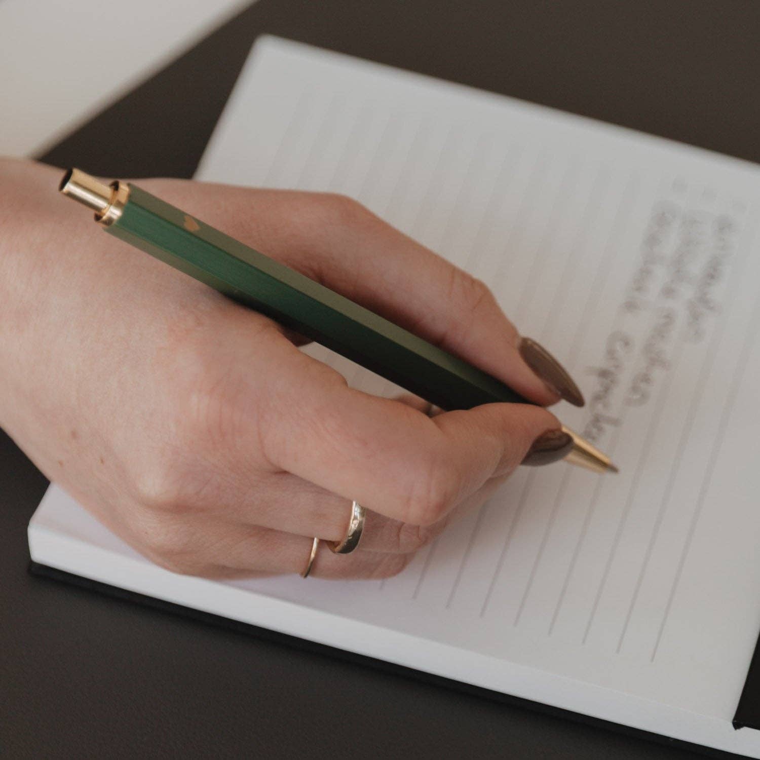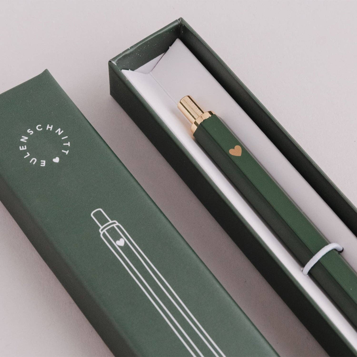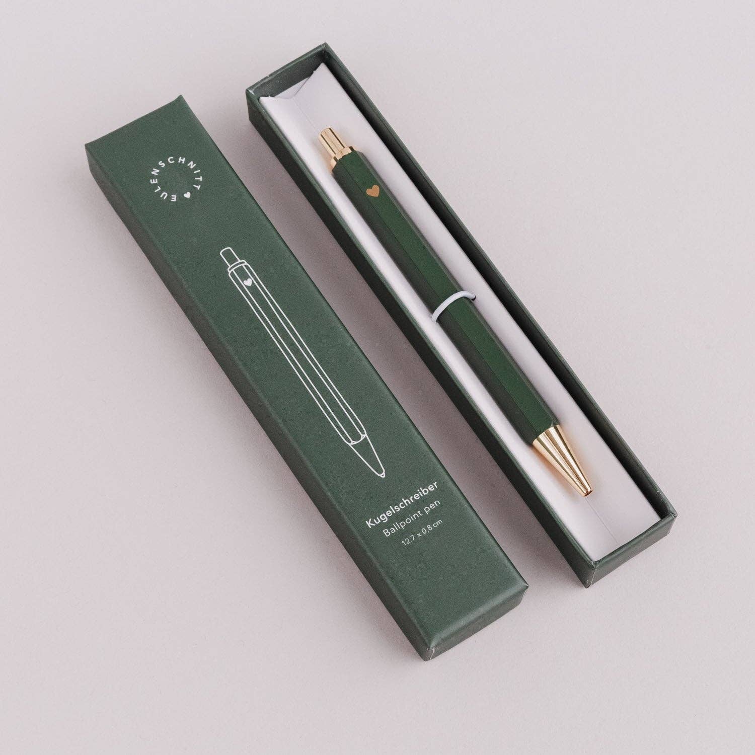 Der Kugelschreiber Rosmarin überzeugt mit einer angenehmen Haptik und einem satten Grünton, der an frischen Rosmarin erinnert – beruhigend, stilvoll und einzigartig. Egal, ob Du kreative Ideen festhältst, Gedanken ordnest oder schnelle Notizen machst – dieser Stift liegt wunderbar in der Hand und macht jedes Schreiben zu einem kleinen Genussmoment. ✨ Das elegante Design ist ein echter Hingucker auf Deinem Schreibtisch und begleitet Dich mit Leichtigkeit durch den Tag.