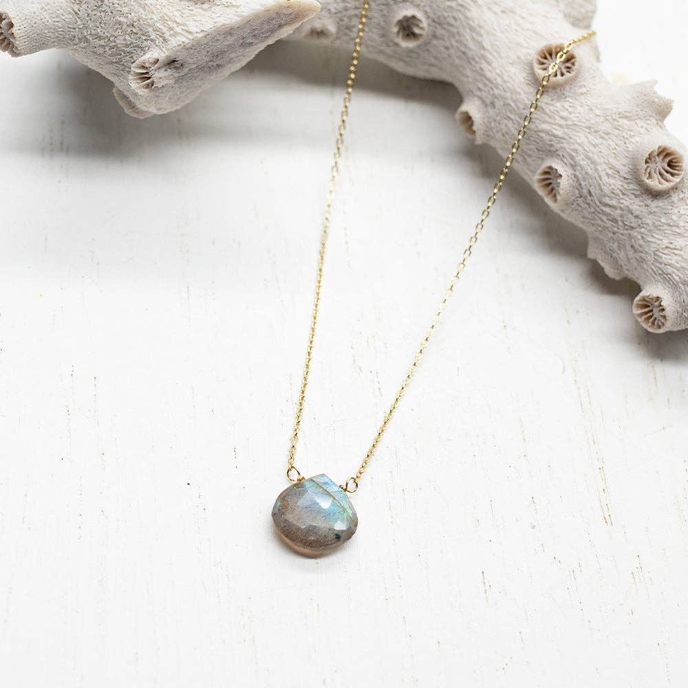 Schimmernder Labradorit für innere Balance – getragen nah am Herzen für mehr Ruhe, Fokus und Stärke im Alltag.