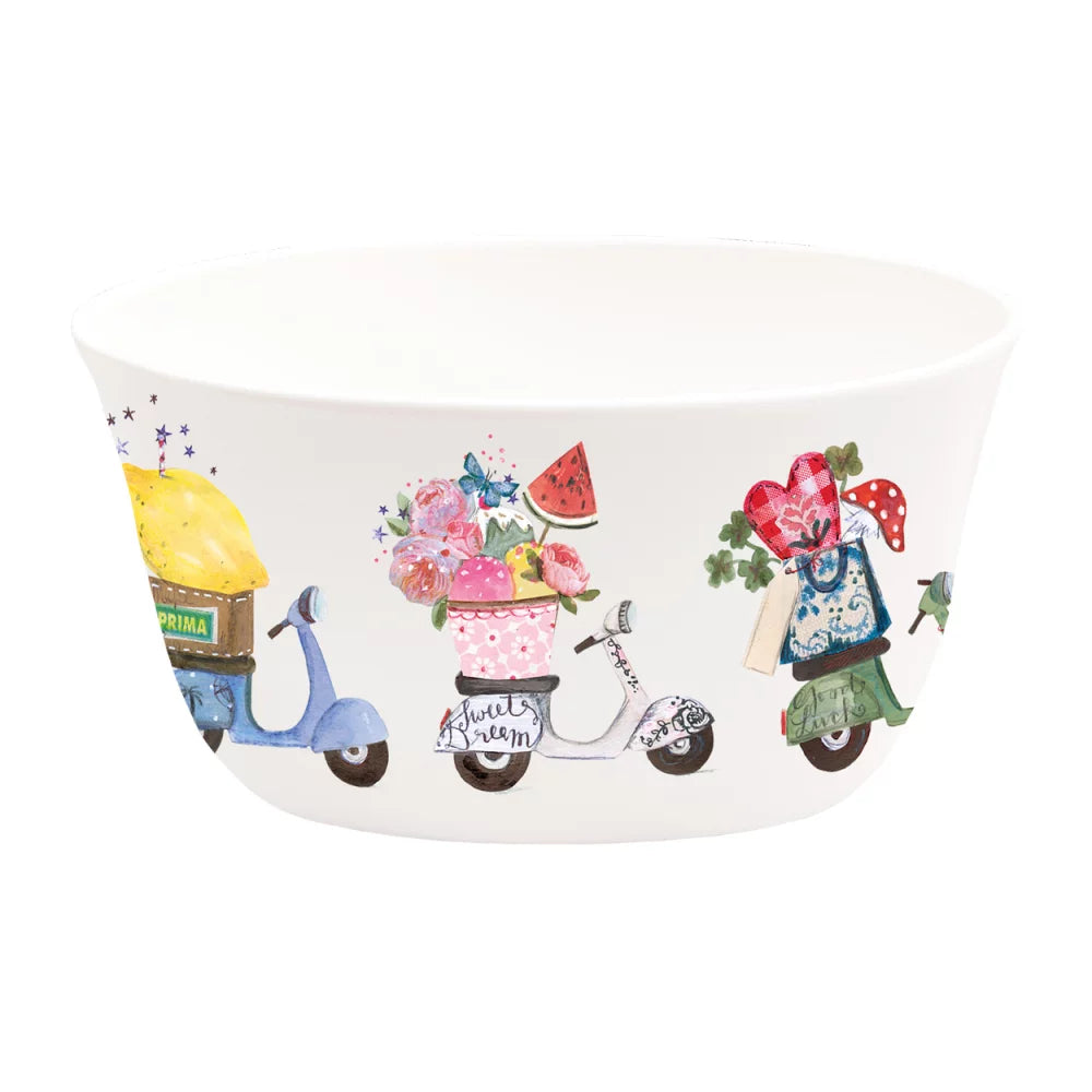 Gönn dir eine kleine Auszeit mit deiner neuen Müslischale „Zeit für mich“! Die liebevoll gestalteten Vespa-Motive von Silke Leffler, beladen mit Blumen, Büchern und kleinen Alltagsfreuden, erinnern dich daran, dass das Leben eine bunte Reise ist. Diese Müslischale begleitet dich perfekt bin den neuen Tag und sorgt für ein Lächeln auf deinem Gesicht.