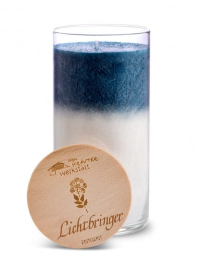 Erleuchten Sie Ihre Räume mit der blau-weißen Heikräuterkerze im Glas "Lichtbringer"- Zeitgeist. Durch das spezielle Zusammenspiel verschiedener Kräuter wird die Kerze zu einer echten Bereicherung für Ihr Zuhause. Genießen Sie Licht, Wärme und den leichten Duft von Heilkräutern.