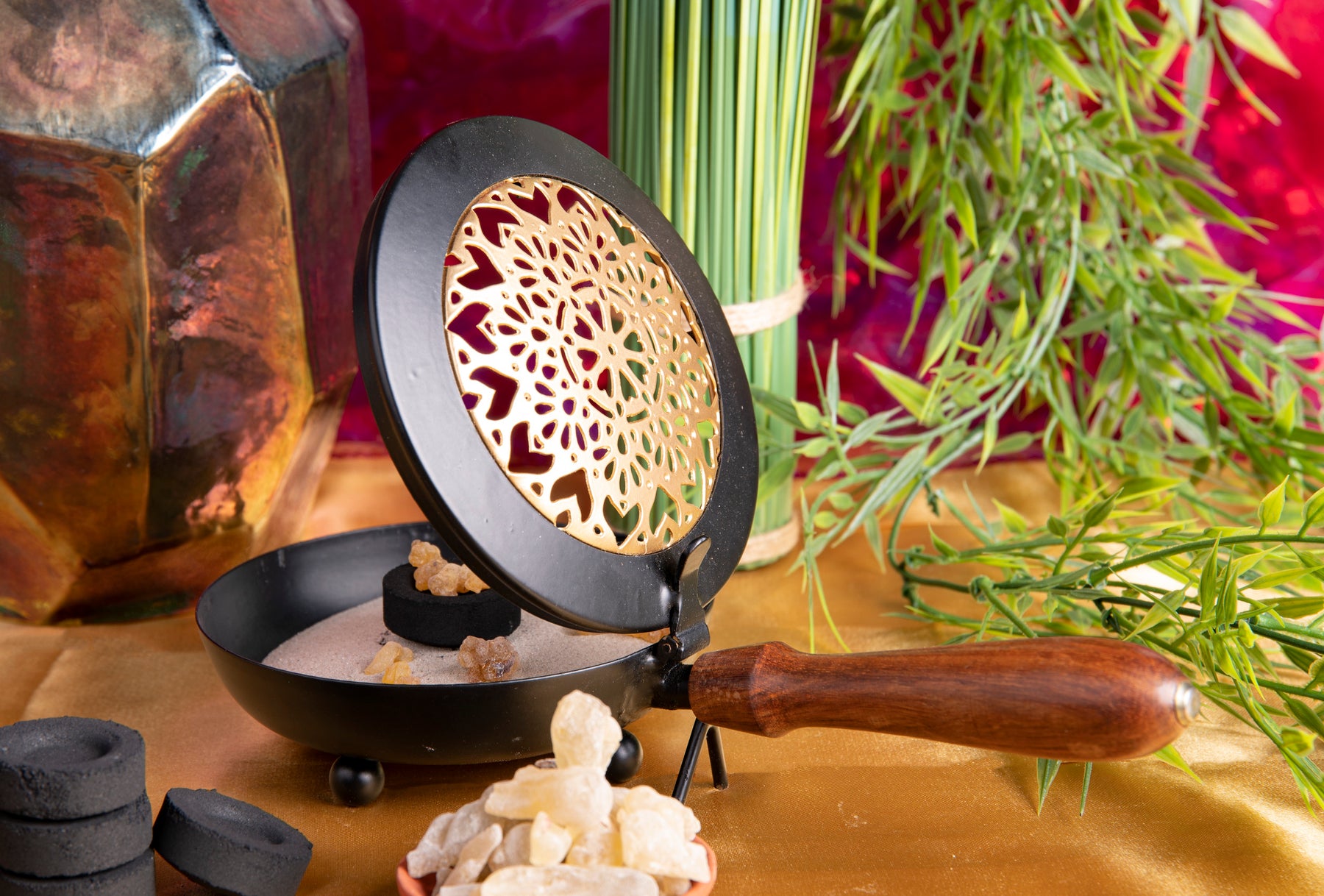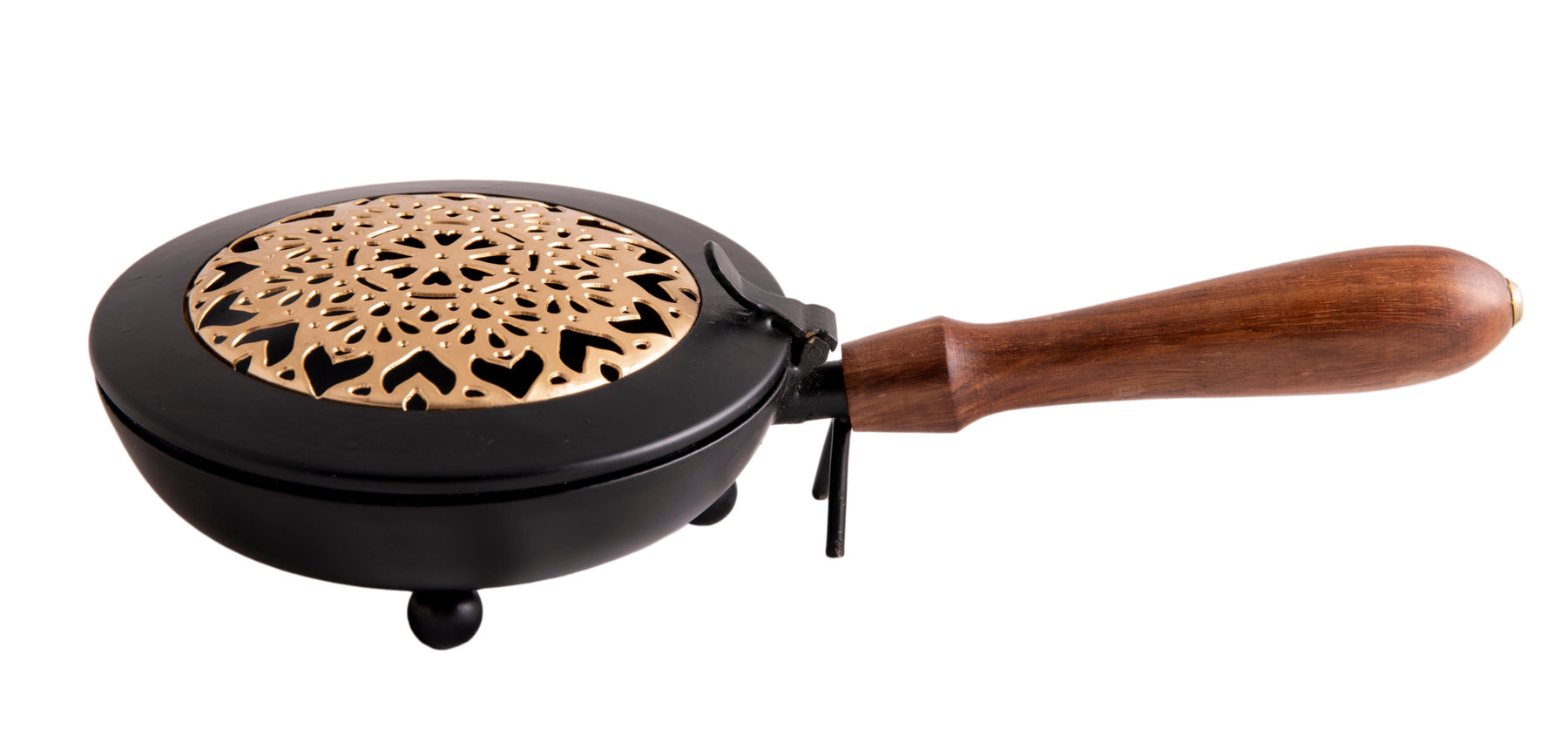 Räuchergefäß Mandala Eisen mit Holzgriff | Tragegefäß zum Tragen