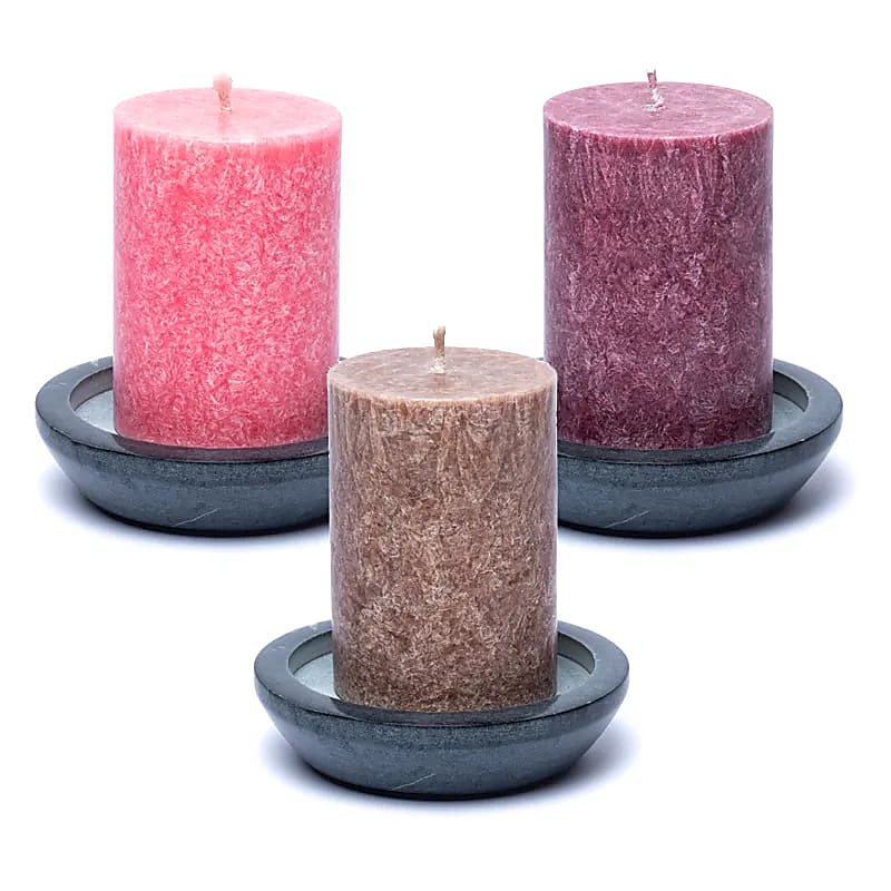Untersetzer | Kerzenständer rund grau Speckstein - Dianas Klosterlädchen