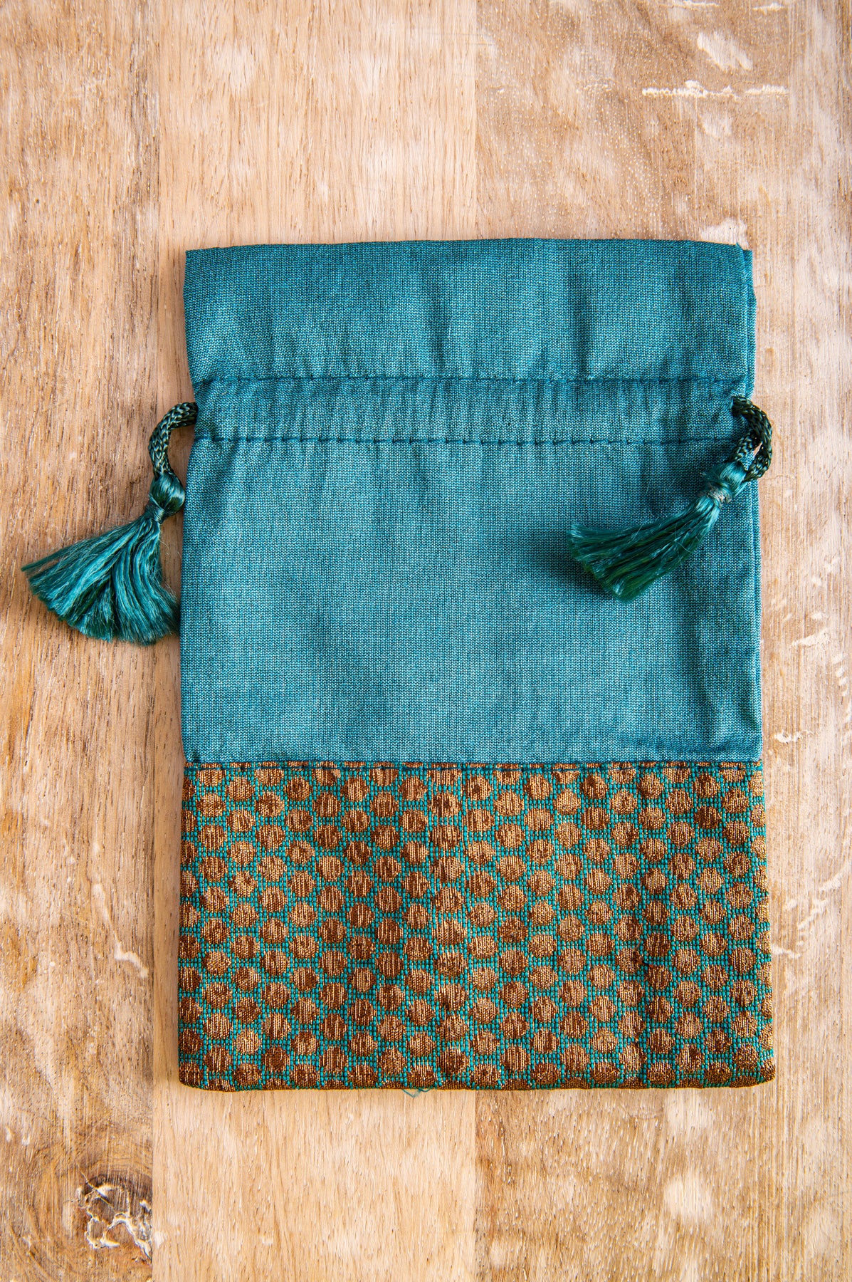 Bezaubernde Säckchen aus Polyester Taft mit Jaquard Bordüren.