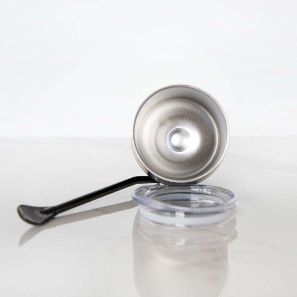 Diese isolierte Matetee-Tasse aus doppelwandigem Edelstahl mit wasserdichtem Deckel und Strohhalm hat ein ästhetisches, schlichtes Design und hält Ihren Mate viele Stunden lang warm. Sie ist ideal, um den ganzen Tag über zu trinken, egal ob im Büro oder unterwegs. Im Gegensatz zu herkömmlichen Kalebassen (Holz, Kürbis...), die den Geschmack des Mate aufnehmen und eine besondere Pflege erfordern, ist Edelstahl ein neutrales Material, das Geschmacksmischungen zulässt, ohne den Geschmack zu beeinträchtigen.