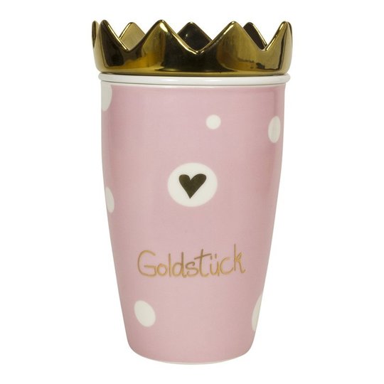 - Henkelbecher mit Teesieb und Kronendeckel