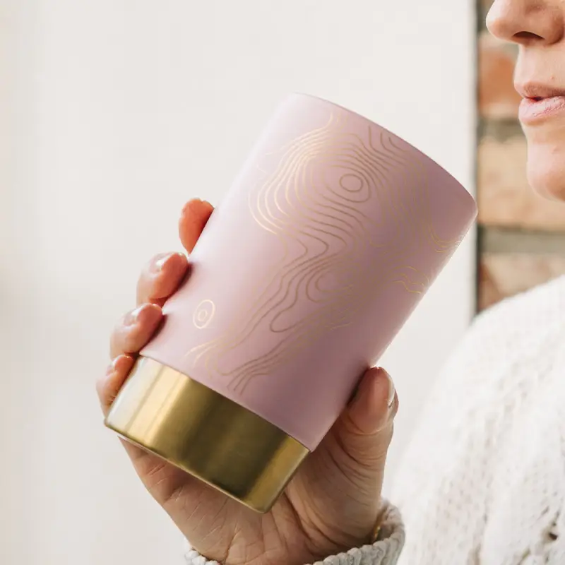 Wunderschöner doppelwandiger Porzellanbecher mit Edelstahlsieb und passendem Porzellandeckel. Ob zu Hause oder unterwegs, mit dem separat erhältlichen Trinkdeckel bleiben Sie mobil. Bereits ein Hit unter Sammlern! Mit Golddruck und aufwendigem Relief. 350 ml 17 cm hoch