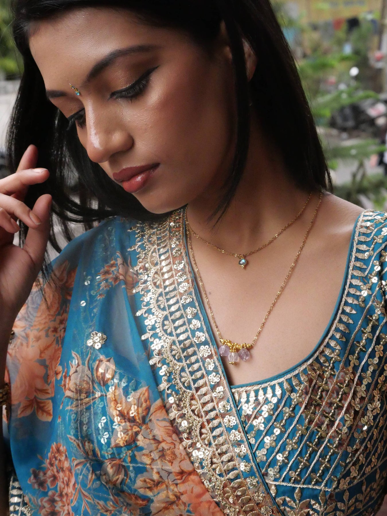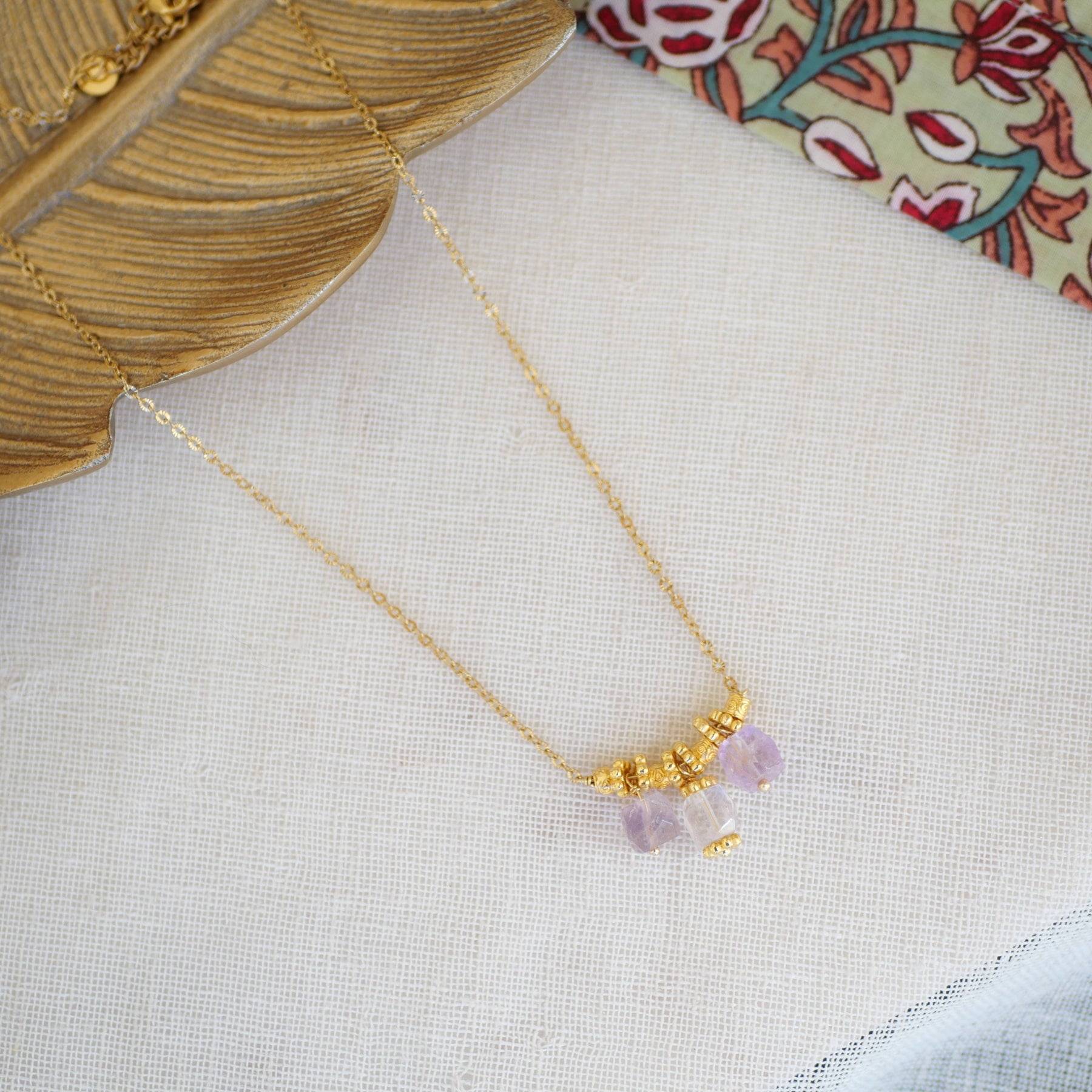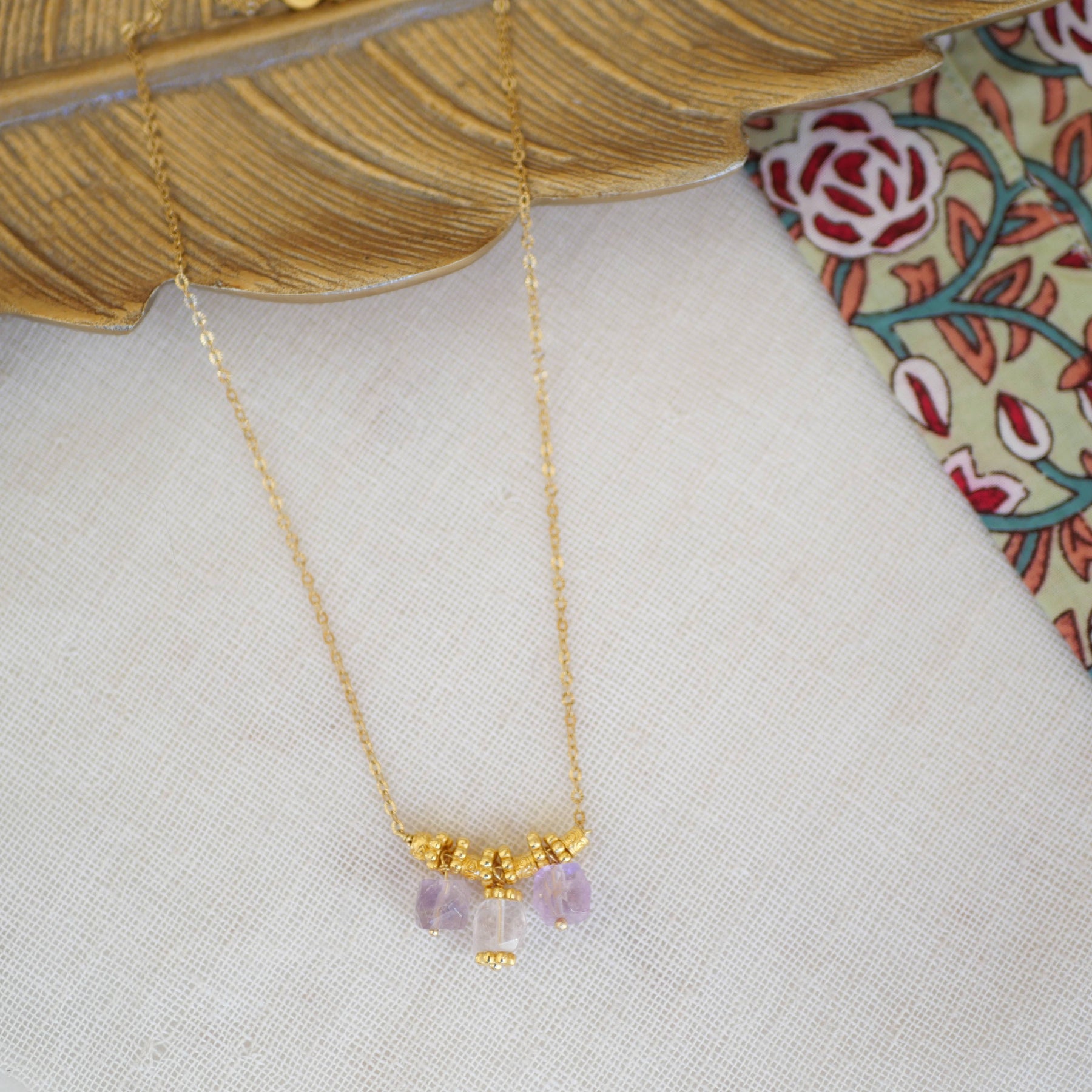Halskette aus Edelstahl mit vergoldeten Anhängern und Ametrin. Größe: ca. 45+5 cm Verlängerung Wird in der Tasche geliefert. Bitte beachte, dass das Schmuckstück geringfügig vom Foto abweichen kann, da jeder Stein ein Unikat ist. Wir weisen freundlich darauf hin, dass Schmuck aus hygienischen Gründen vom Gesetzgeber her vom Umtausch ausgeschlossen ist.
