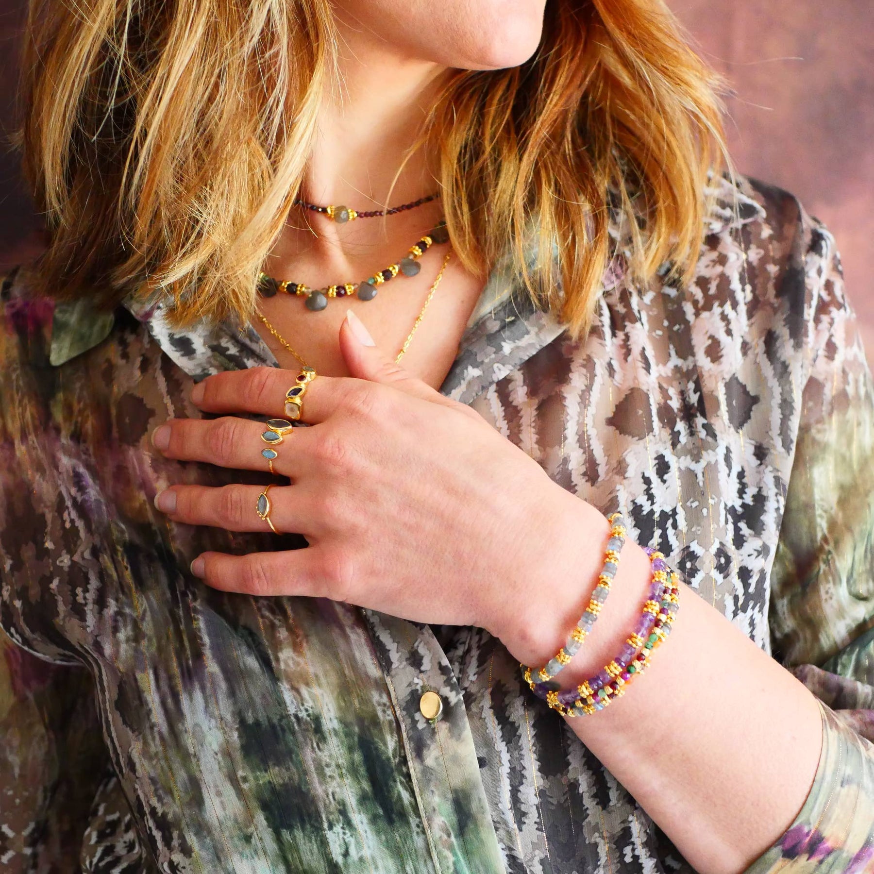 Erlebe die kraftvolle Schönheit des GINANDGER Santulan Armreifs – ein Edelstahlarmband, das mit Charms aus Granat, Rubis und Zoisit verziert ist. Jedes Schmuckstück ist ein Unikat, denn jeder Stein bringt seine eigene Farbvielfalt und Energie mit. Mit ca. 16 + 5 cm Verlängerung passt sich der Armreif flexibel an Dein Handgelenk an und wird so zum perfekten Begleiter für jeden Anlass.
