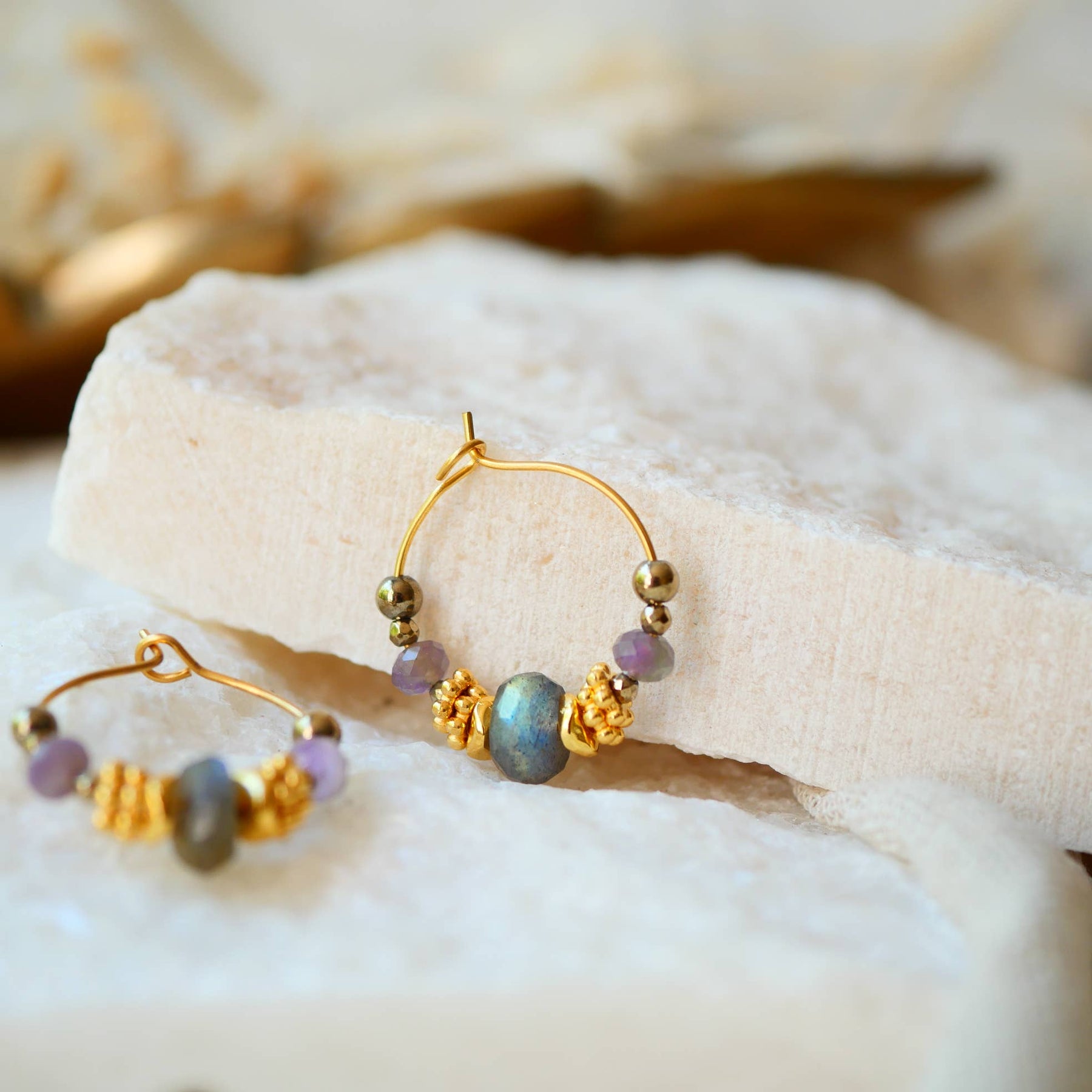 Minimalistische Edelstahl-Ohrringe mit Amethyst, Labradorit & Charms – Boho-Schmuck für Damen
