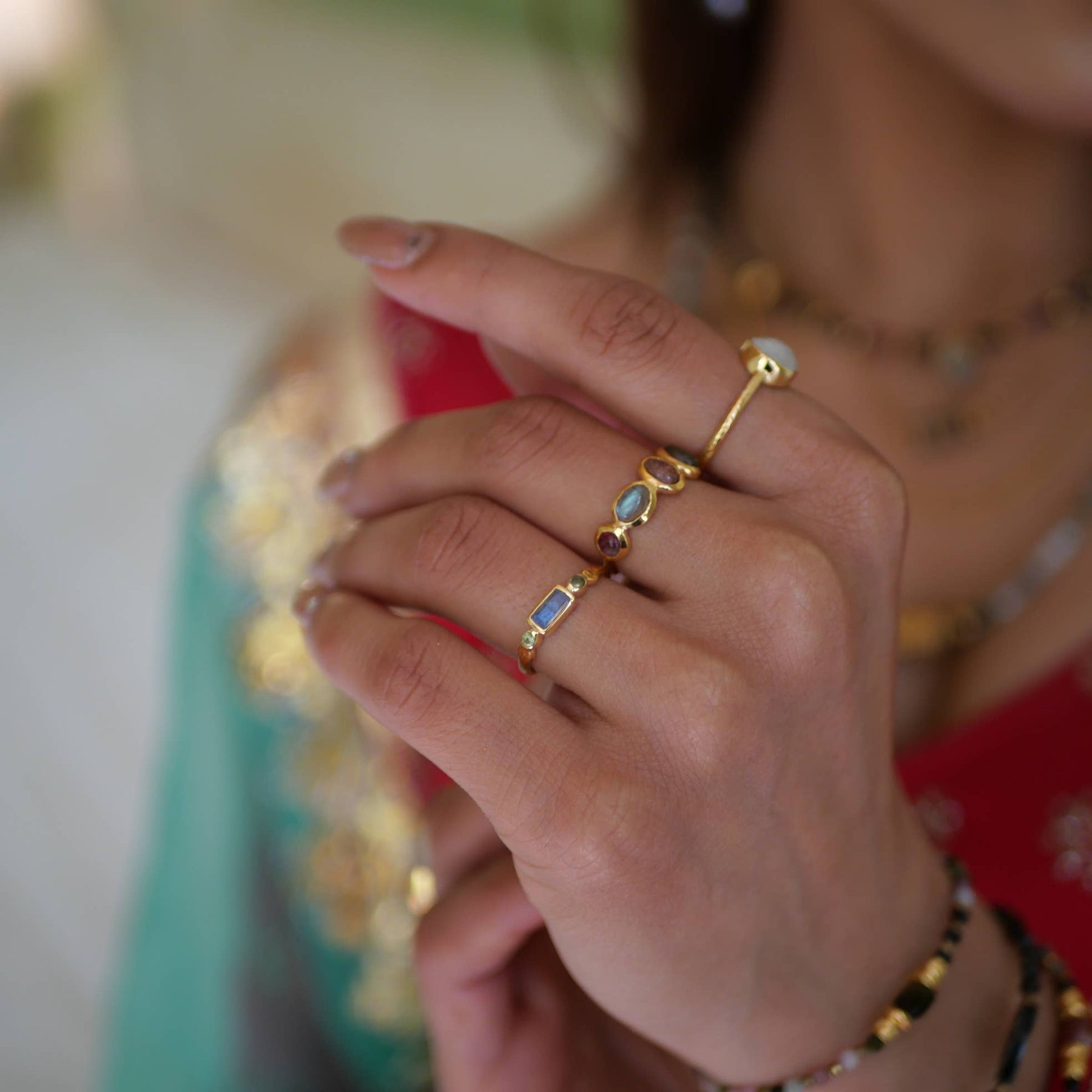 Lass Dich verzaubern von der Magie dieses zauberhaften Goldrings, der sich flexibel zwischen den Größen 54 und 60 anpassen lässt ✨. Geschmückt mit einem geheimnisvollen Labradorit und einem funkelnden Turmalin wird jeder Ring zu einem einzigartigen Begleiter – genau wie Du! Jeder Stein erzählt seine eigene Geschichte und verleiht Deinem Look eine besondere, bohemian Eleganz. Ideal als Geschenk für Frauen, die das Außergewöhnliche lieben und den Sommer mit natürlichem, handgefertigtem Schmuck feiern möchten. Setze ein strahlendes Statement und genieße den Zauber! 🌿💫