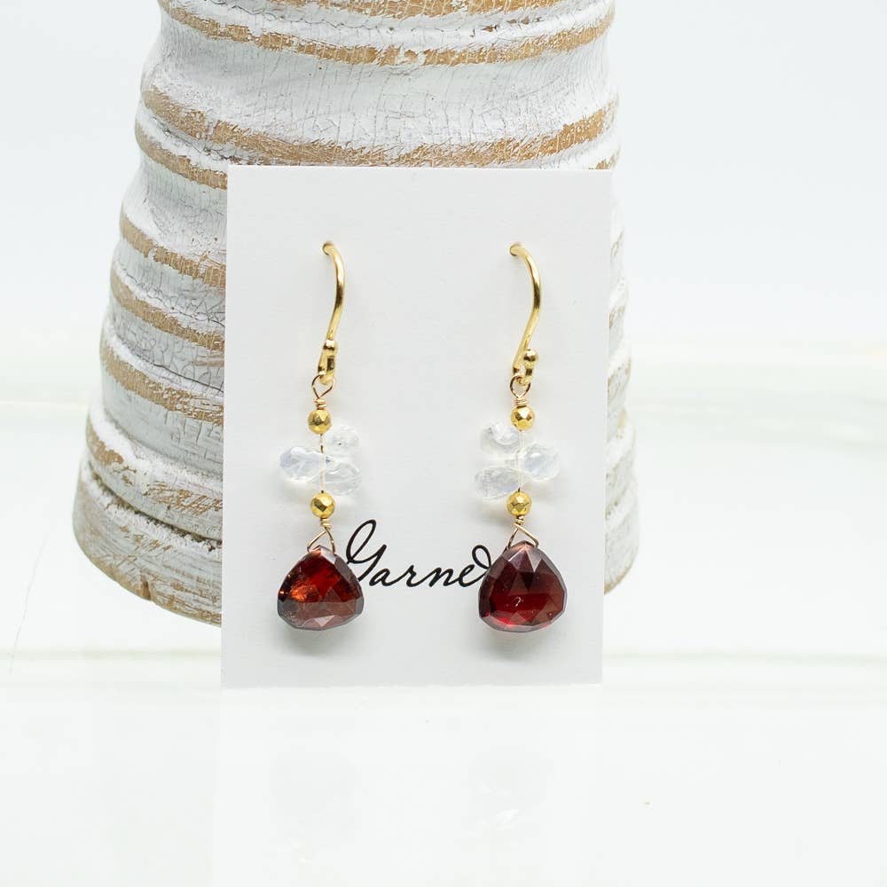 Regentropfen-Ohrringe mit Granat und Mondstein