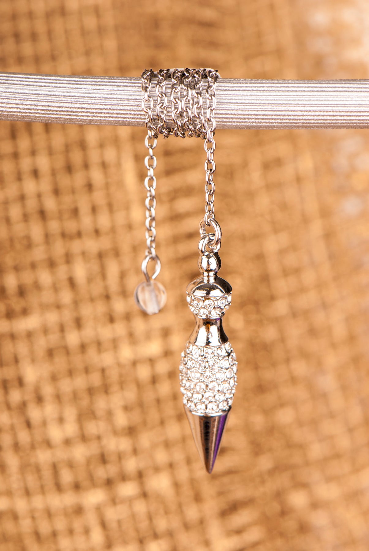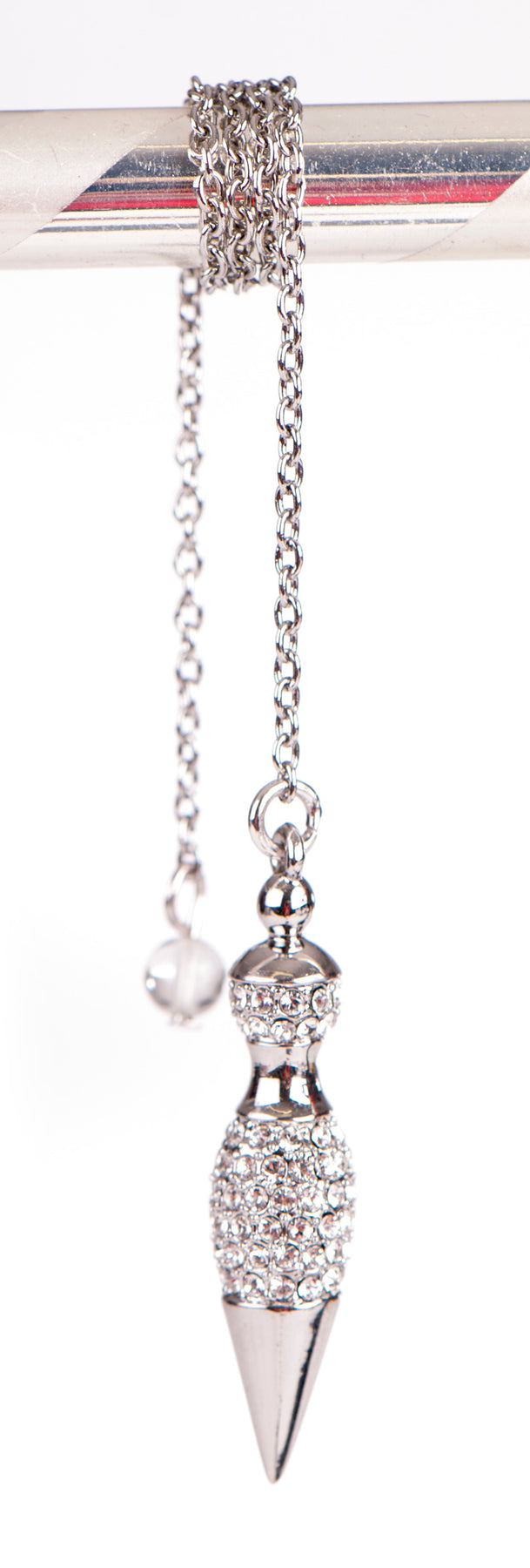 Fein, glitzernd und bezaubernd - ein besonderes Pendel für zarte Wesen. Imitation Rhodium platiniert, mit Glaskristallen und Kette.