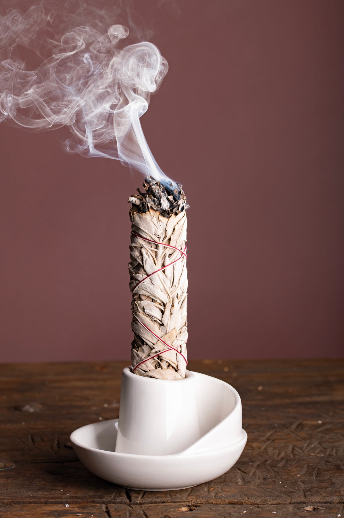 Jede Schale wird von einer Künstlerin entworfen und in einer europäischen Keramikwerkstatt sorgfältig hergestellt und gebrannt. Die weiße Glasur verleiht der Schale einen klaren, zeitlosen Look, der sich harmonisch in jede Räucherumgebung einfügt.