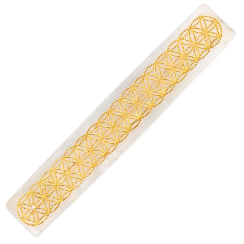 Räucherstäbchenhalter Selenit Blume des Lebens, länglich - Dianas Klosterlädchen
