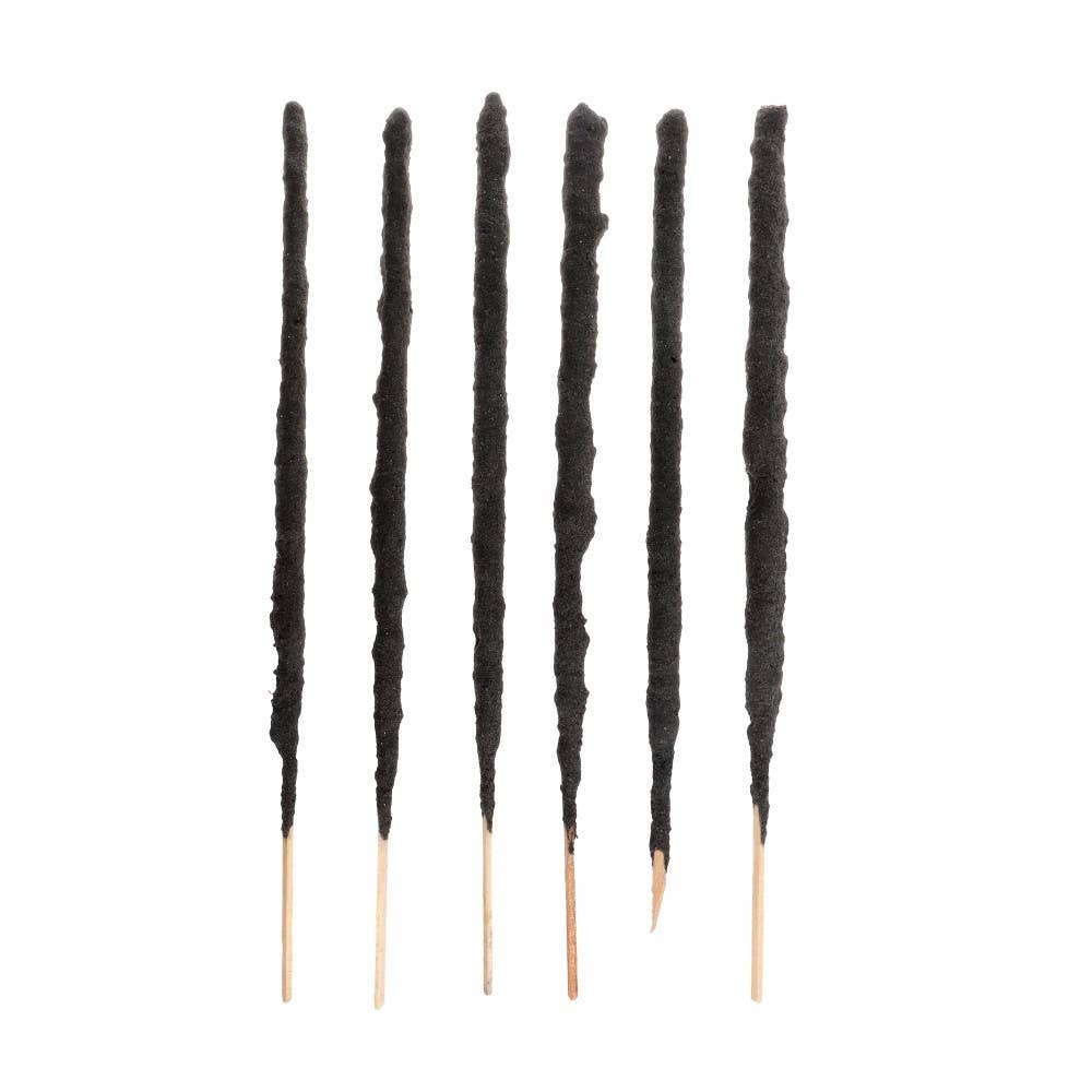 Handgefertigte Räucherstäbchen. Hergestellt aus Früchten und Biomasse mit konzentriertem aromatischem Öl aus Cacaol, natürlichem Bindemittel, Holzkohle und Salz Jede Schachtel enthält 6 dicke Stäbchen mit extra langer Brenndauer (23 cm lang) Jedes Stäbchen brennt ca. 1 Stunde
