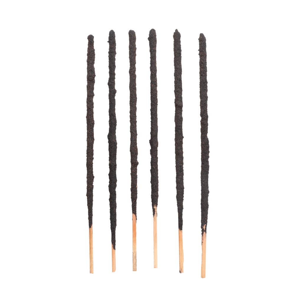 Handgefertigte Räucherstäbchen. Hergestellt aus Früchten und Biomasse mit konzentriertem aromatischem Öl aus Cacaol, natürlichem Bindemittel, Holzkohle und Salz Jede Schachtel enthält 6 dicke Stäbchen mit extra langer Brenndauer (23 cm lang) Jedes Stäbchen brennt ca. 1 Stunde