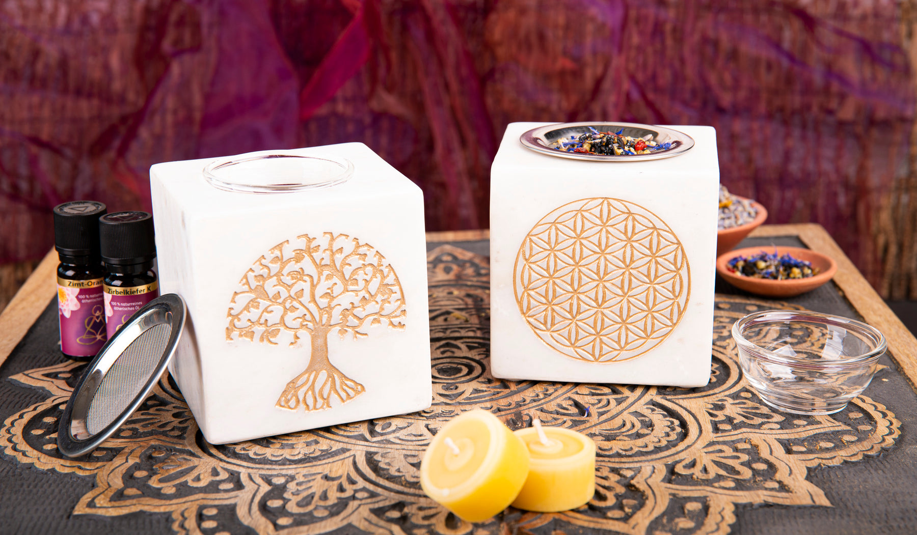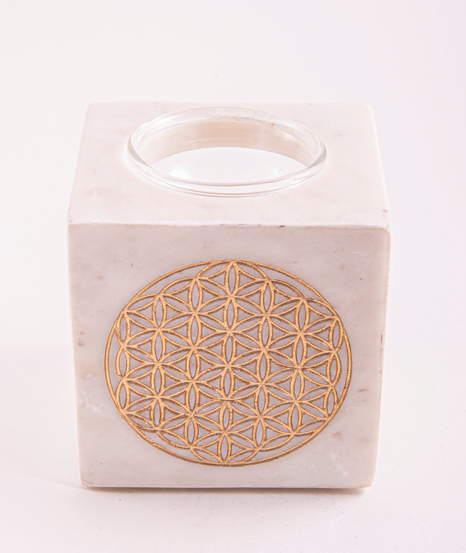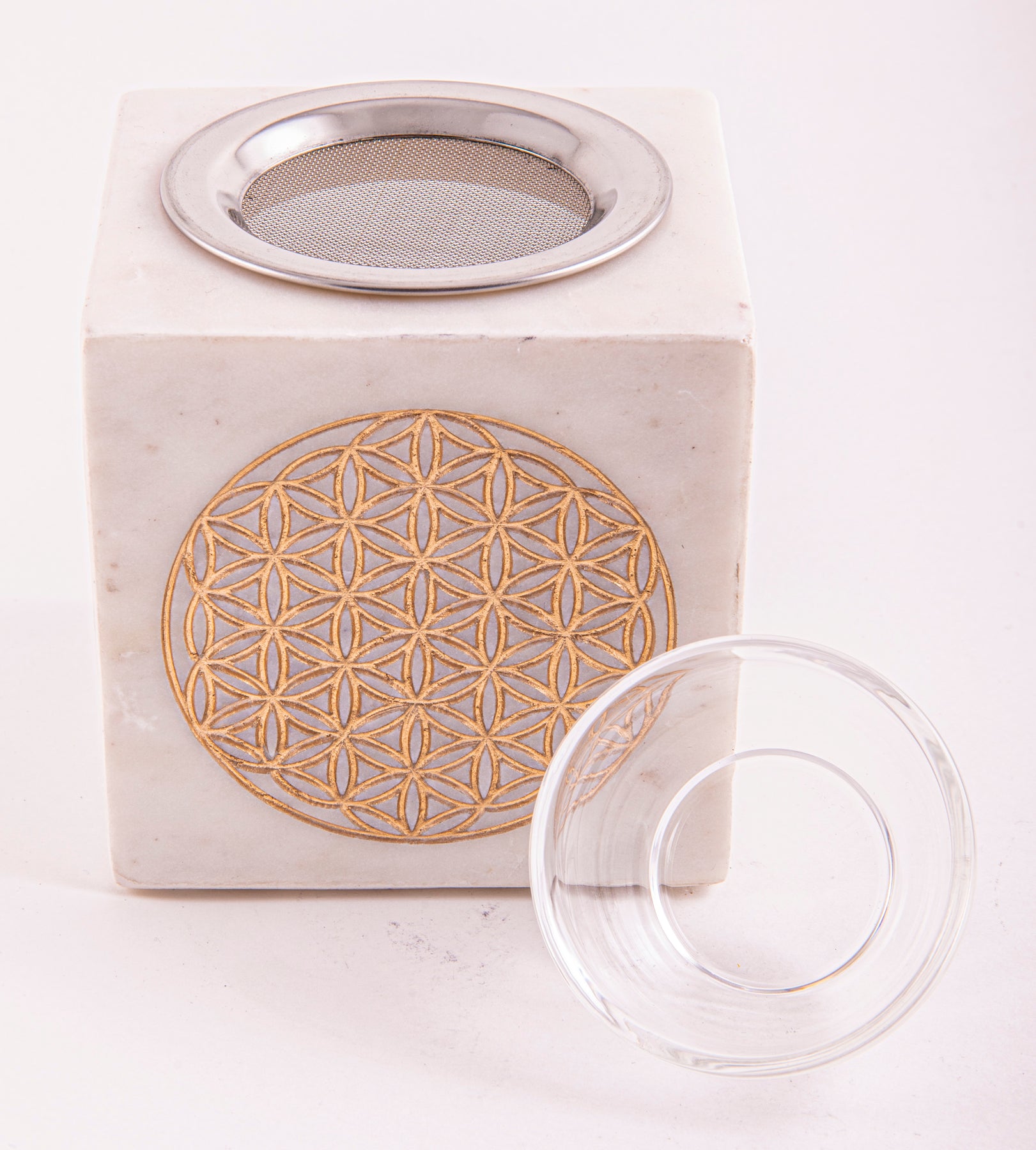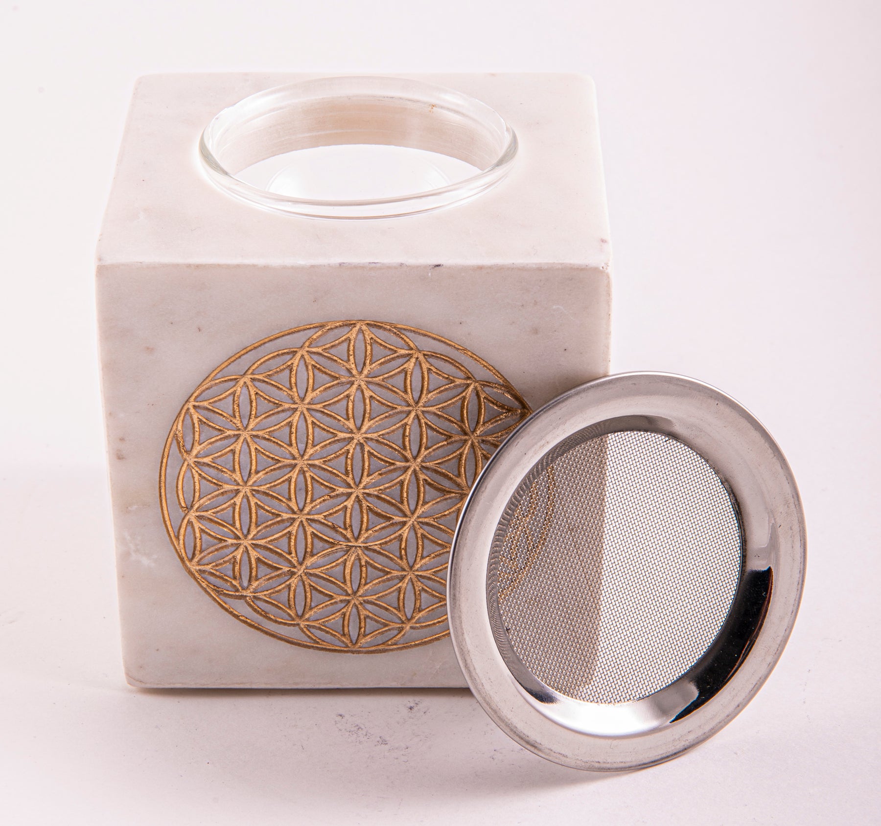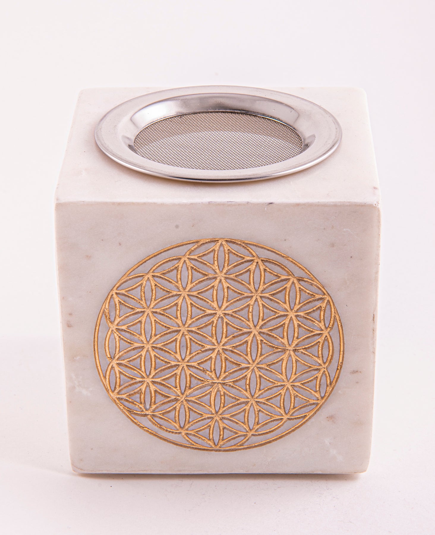 Aromalampe "Lebensblume" mit Sieb quadratisch Marmor 2 in 1 Gefäß - Dianas Klosterlädchen