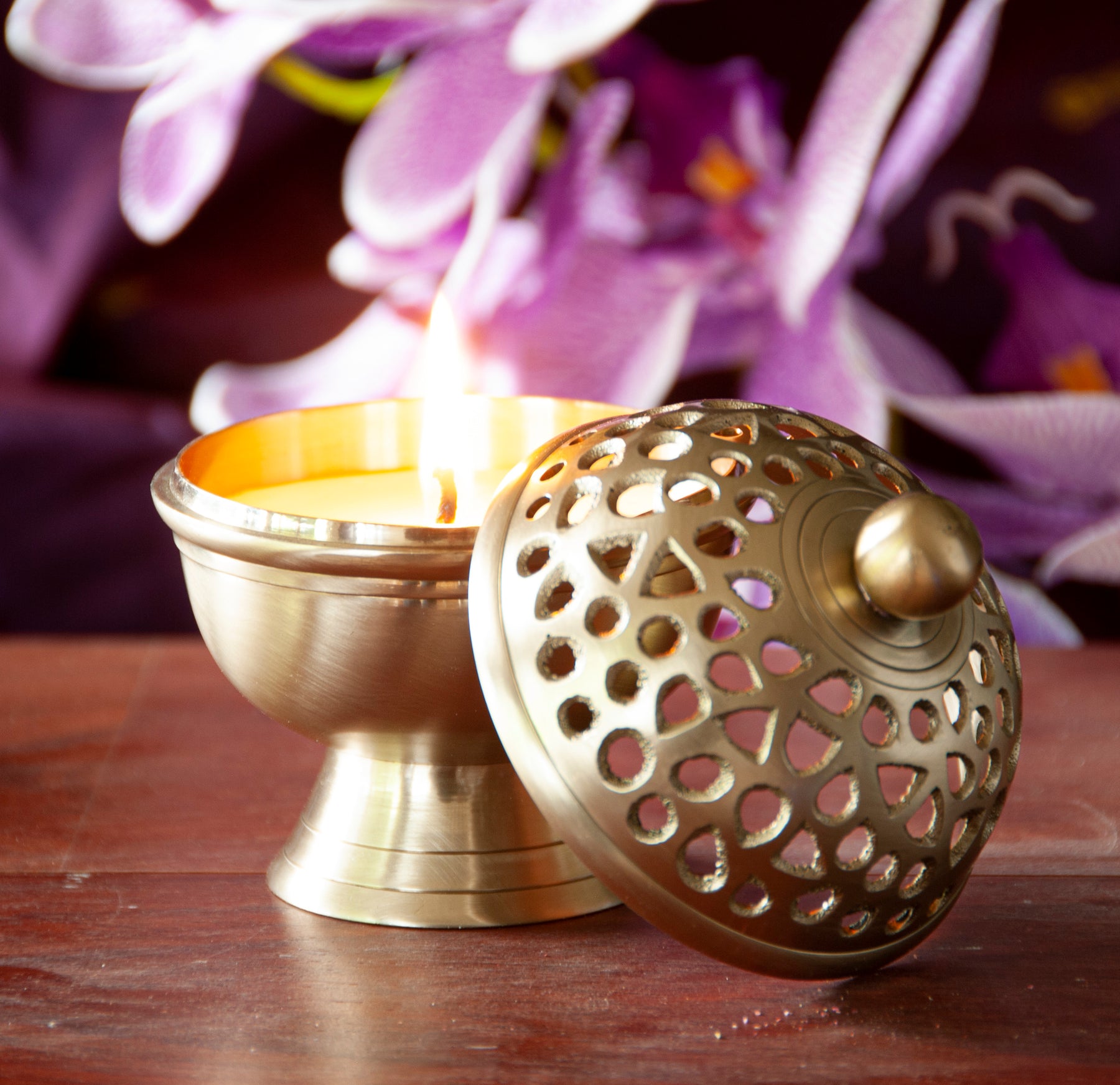 Diese zauberhaften Kerzenlichter in edlen Messinggefäßen sind wundervoll geeignet für einen festlich gedeckten Tisch in stilvollem Ambiente oder auch für den Altartisch und Meditationen. Ob in großen Kelchen oder süßen, kleinen Döschen, stets entflammt ein mystisches Licht aus diesen edlen Messinggefäßen.