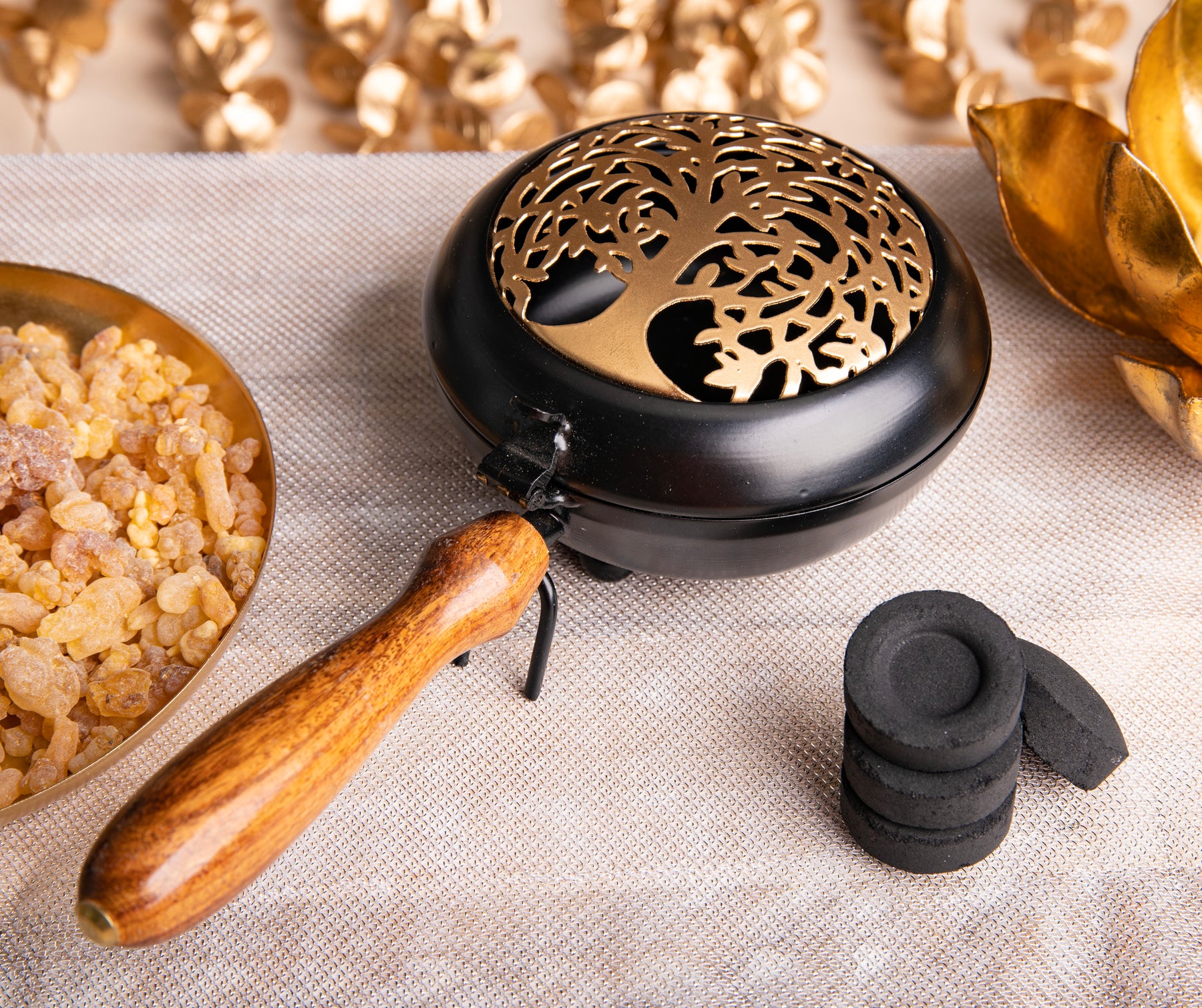 Diese Gefäße sind besonders gut geeignet für Raum und Aurareinigungen. Durch den langen Holzgriff lassen sie sich leicht in der Wohnung umhertragen. Gehe mit leichten Schwenkbewegungen von Raum zu Raum und räuchere sorgfältig die Ecken aus. Bei Aurareinigungen geht man wiederum mit leichten Schwenkbewegungen von unten nach oben um die Person herum und fächelt ihr bzw. ihm die Rauchfahnen zu.
