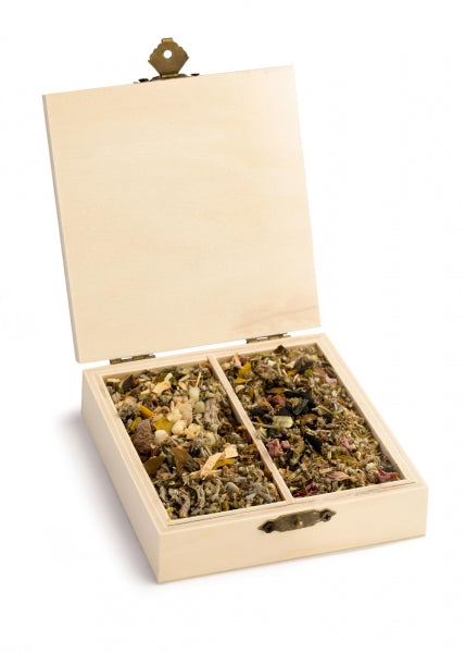 Mit Beifuß, Alantwurzel, Johanniskraut, Rosenblätter, Mistelkraut, Rosmarin, Zimt, Storax.