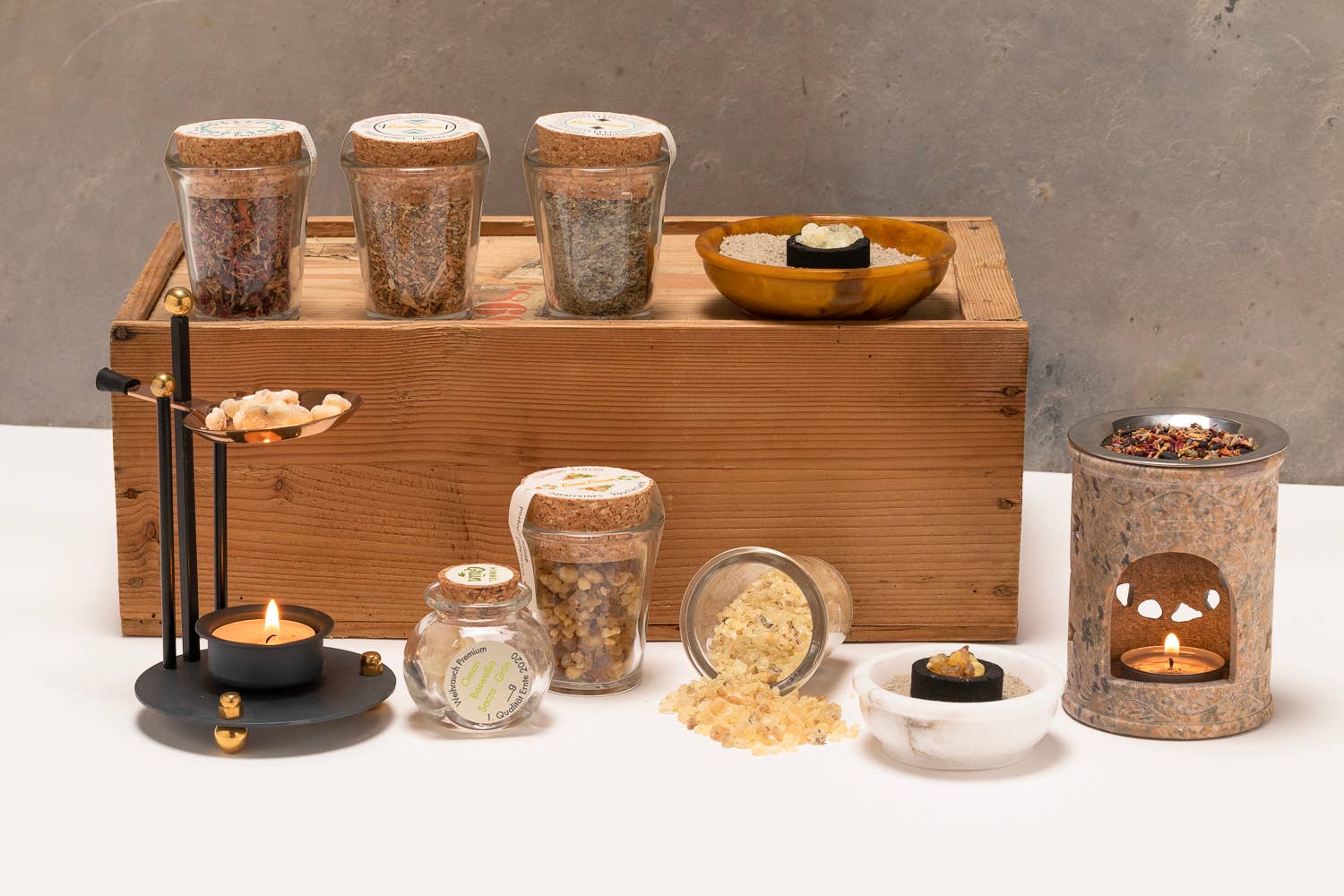 - Natürliche Zusammensetzung (Harze, Hölzer, Kräuter, Blüten).