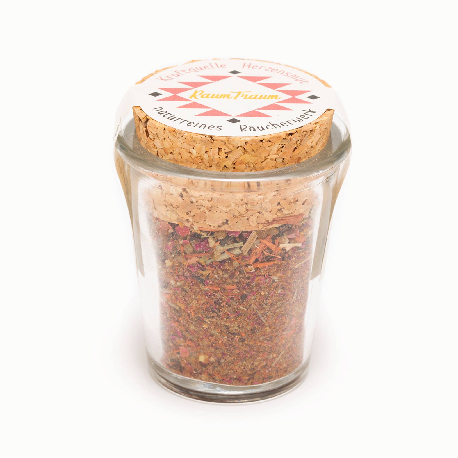 Raum-Traum Räucherwerk stammt aus kontrolliert ethischen und moralisch vertretbaren Quellen. Konsequente Ernte unter Achtung der Menschen und Naturrechte in Abbauländern. Dafür stehen wir im Namen unserer Firma. Die Abfüllung erfolgt einzeln in Handarbeit mit Hilfe des Arbeitskreises für Sozialmedizin. Räuchern willst du? Wann immer Sie der Gedanke trägt, ihre Räume oder Umwelt zu reinigen, zu erneuern oder mittels Räucherung neu zu energetisieren und zu stärken. Inhalt: Myrrhe Harz wirkt erdend, besänftigend und gereinigt, Adenweihrauch wirkt belebend, energetisierend, stimmungsanhebend und ausgleichend. Sandelholz (rot) verströmt Wärme und wirkt erdend, beruhigend und entspannend. Rosenblüten erhebend liebevoll bei Kummer, Leid und Ängsten und Lemongras wirkt konzentrationsfördernd, aufbauend, vitalisierend und aufheiternd. Styrax: heiliger traditioneller Bernstein, Balsam für die Seele.