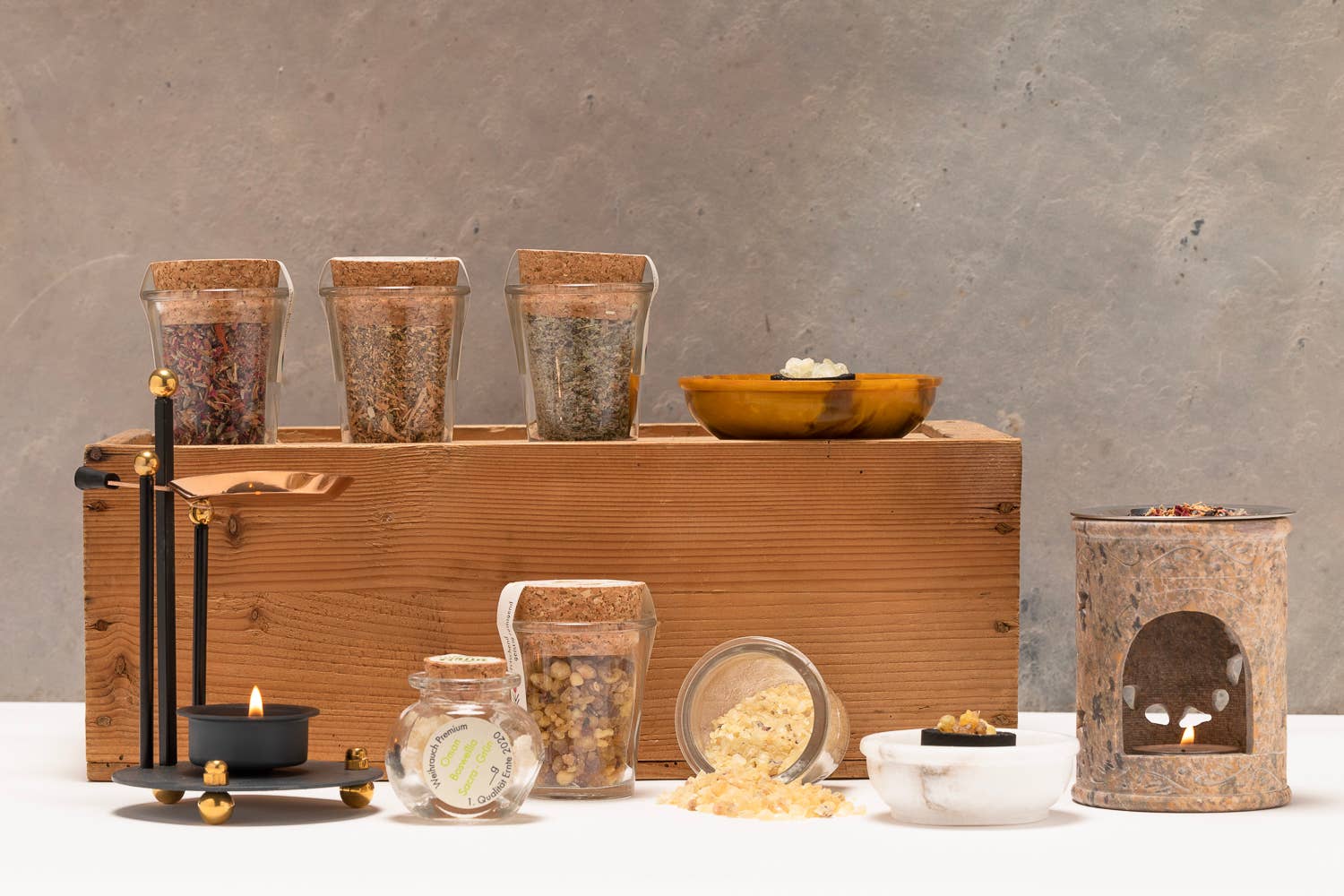 - Natürliche Zusammensetzung (Harze, Hölzer, Kräuter, Blüten).