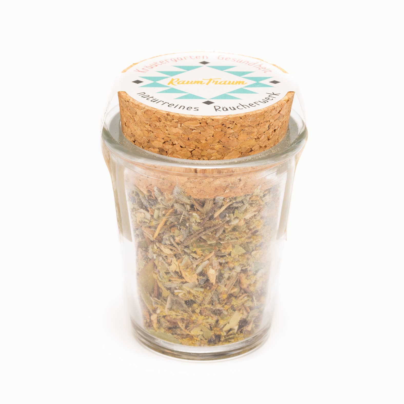 Raum-Traum Räucherwerk stammt aus kontrolliert ethisch und moralisch vertretbaren Quellen. Konsequente Ernte unter Achtung der Menschen und Naturrechte in Abbauländern. Dafür stehen wir im Namen unserer Firma. Die Abfüllung erfolgt einzeln in Handarbeit mit Hilfe des Arbeitskreises für Sozialmedizin. Räuchern wann? Wann immer Sie der Gedanke trägt ihre Räume oder Umwelt zu reinigen, zu erneuern oder mittels Räucherung neu zu energetisieren und zu stärken. Inhalt: Angelika Wurzel wirkt beruhigende, erdend und immunstärkend, Eisenkraut wirkt schützend, stimmungsaufhellend, reinigend und bewusstseinserweiternd. Lavendel hat eine beruhigende und entspannende Wirkung. Rosmarin wirkt reinigend, heilend, aufbauend und klärend, weißer Salbei vertreibt negative Energien und Wacholderholz schützt Körper, Seele und Geist vor allem Negativen.