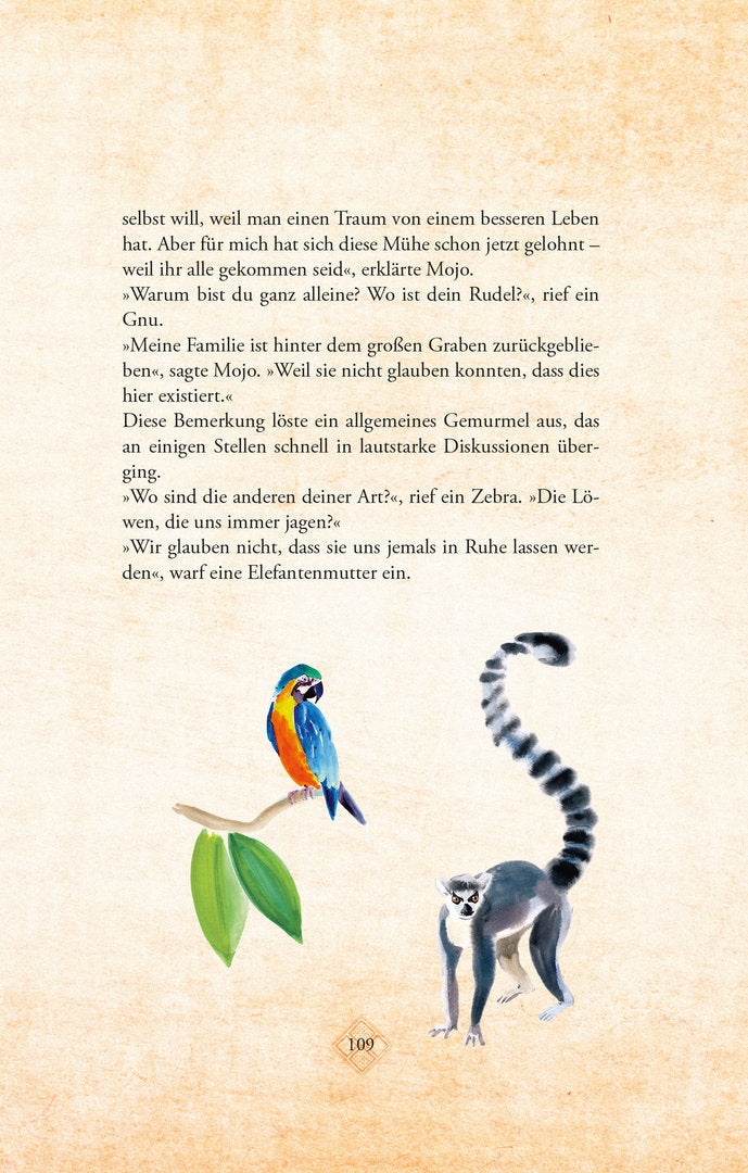 Der junge Löwe Mojo träumt vom freien Leben in der Savanne außerhalb des Zoos und in Harmonie mit allen Tieren. Von anderen belächelt, fasst er sich dennoch ein Herz und überwindet die Absperrungen. Begleitet von einer weisen Eule und gewappnet mit »7 weisen Kräften«, macht sich Mojo auf den Weg. Getragen von seiner Vision und Herzenskraft, lernt er alle Lebenshürden zu meistern und kommt seinem Traum Stück für Stück näher.