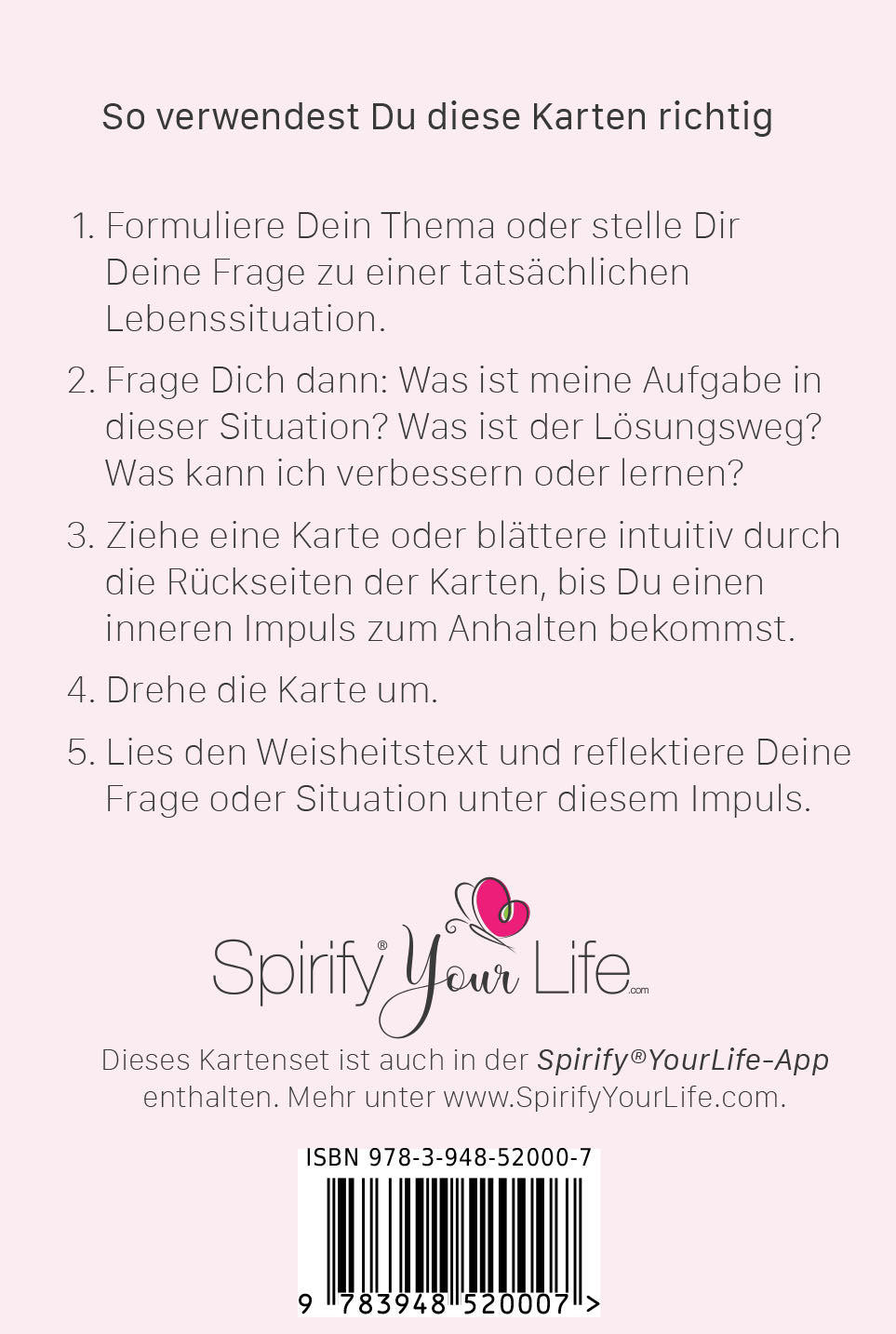 Das original Therapie- und Coaching-Kartenset mit 52 Weisheits- und Antwortkarten zu Beziehung, Liebe, Selbstliebe. Zum Beispiel als Tagesthema, in Trainings, im Yoga, in der Paartherapie, im Coaching. Sinn und Antwort finden, spielerisch und leicht. So sind ergänzend und begleitend zum Weltbestseller »Das Geheimnis des Herzmagneten« von Ruediger Schache, die Coachingkarten entstanden.