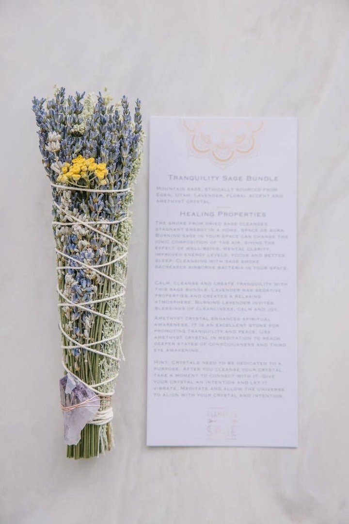 Verwandle Dein Zuhause in eine Oase der Stille und Gelassenheit. Mit jedem Bündel erhältst Du eine Informationskarte(englisch), die Dich durch den Prozess der energetischen Reinigung führt und Dir die heilenden Eigenschaften der verwendeten Kräuter erklärt.