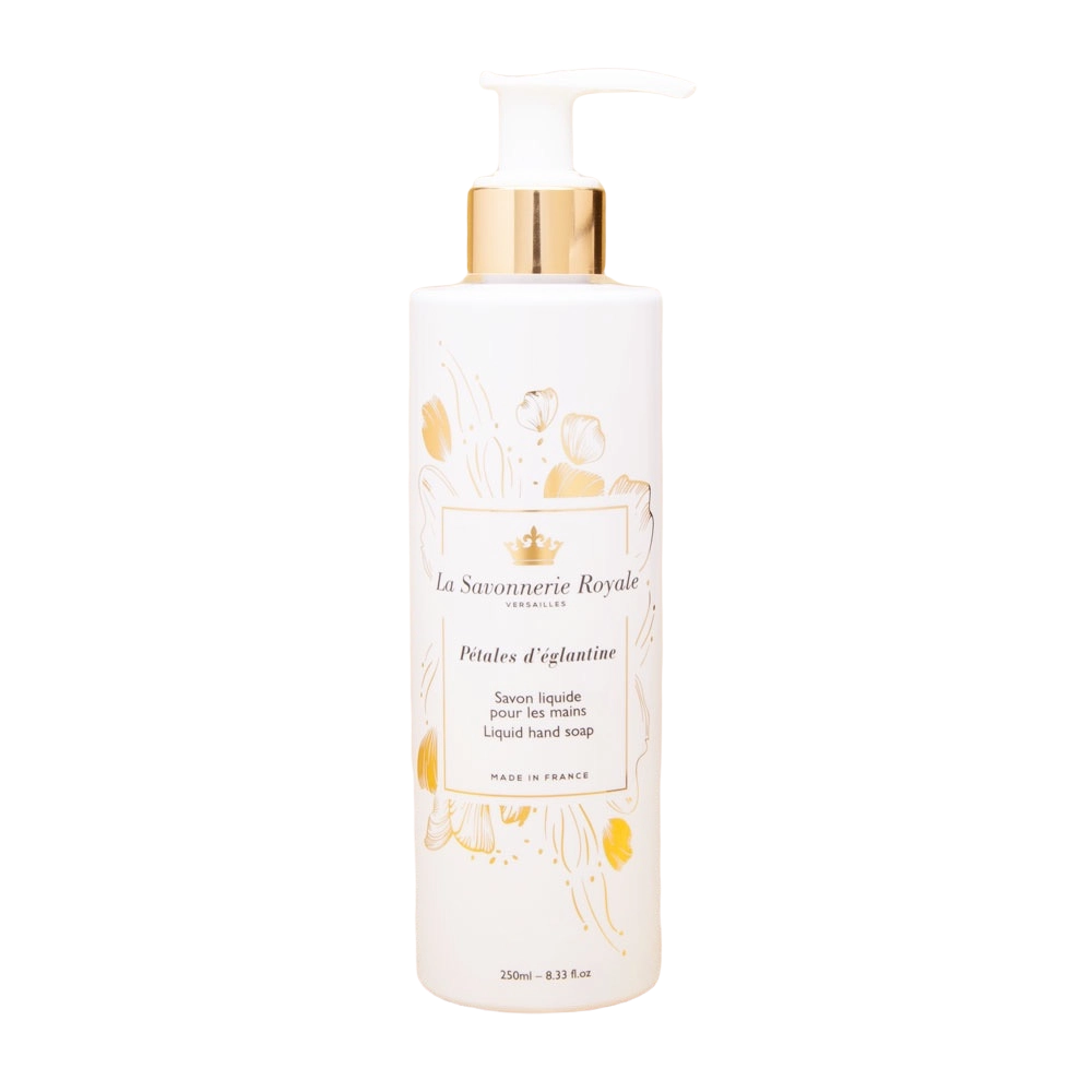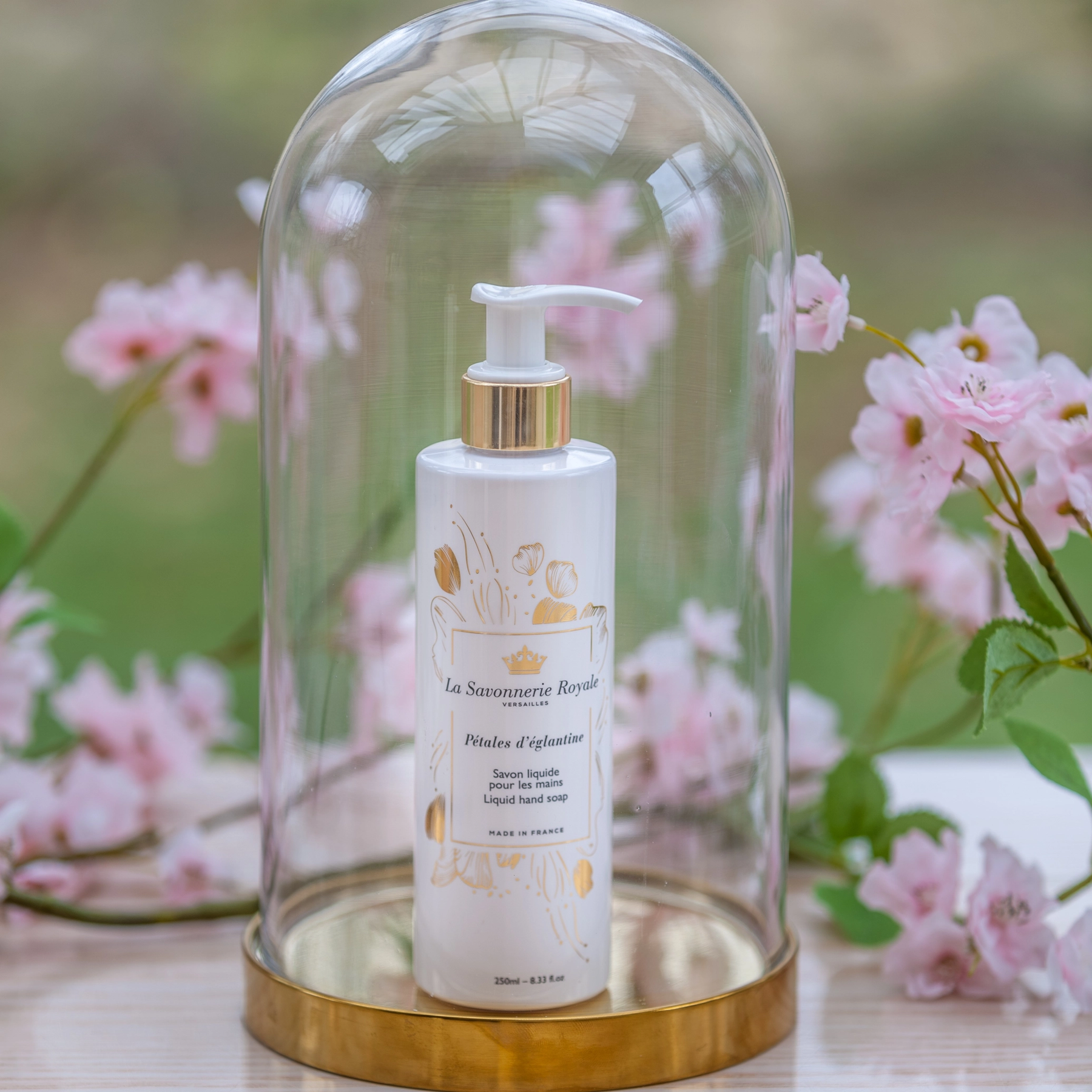 Die Savonnerie Royale bietet natürliche Seifen an, die von der Geschichte Frankreichs inspiriert sind. Marie-Antoinette liebte Rosen. Der Schöpfer des Parfums Pétales d'églantine ließ sich von ihr inspirieren, um einen Rosenduft zu kreieren, der dank der Moschusnoten zart und leicht holzig ist. Um ein luxuriöses Produkt von hoher Qualität zu erhalten, stellen sie die extra milden Flüssigseifen in der Haute-Provence nach der Tradition der Marseiller Seifen her.