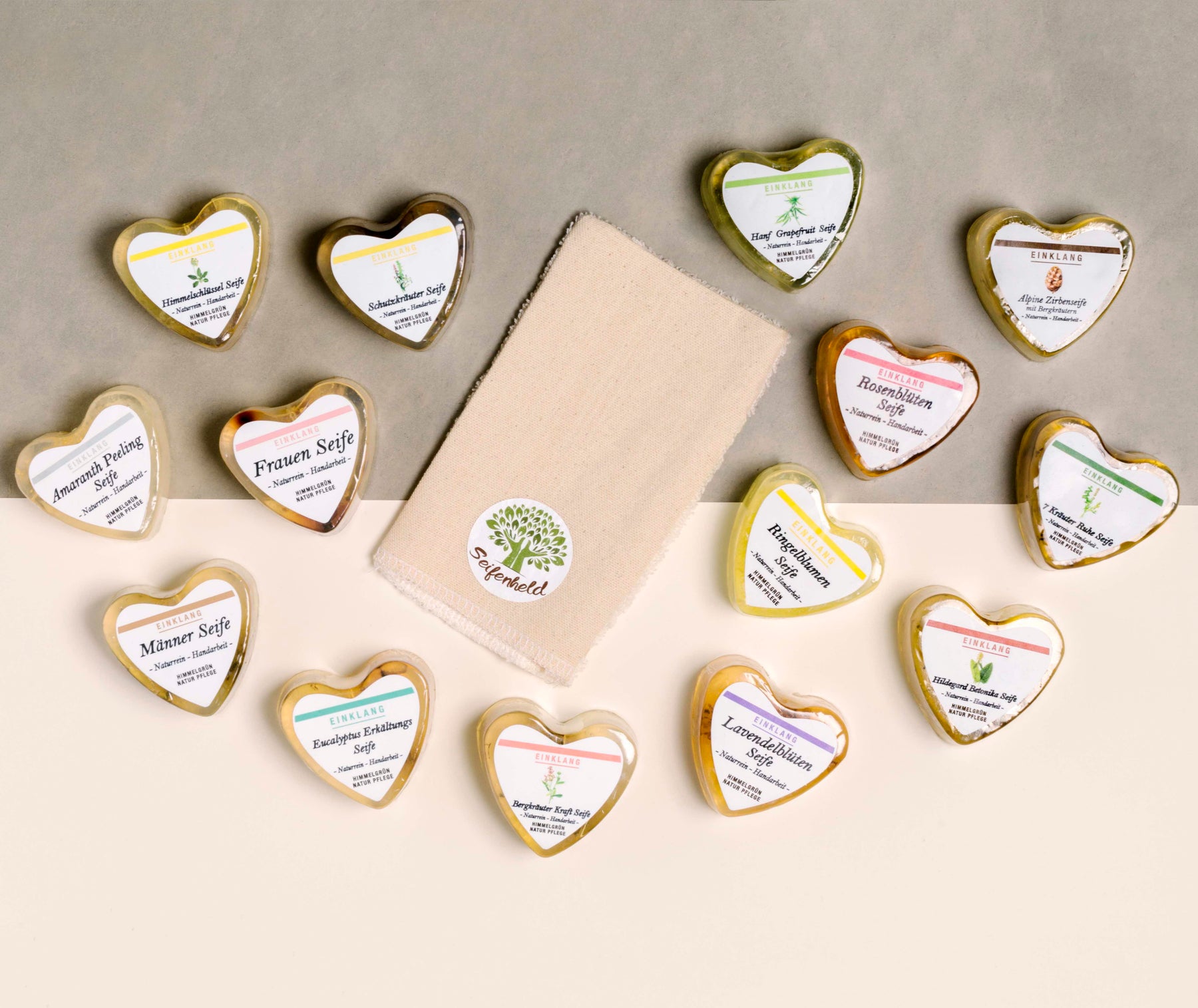 Die handgemachte Naturseife Einklang von Himmelgrün verwöhnt deine Haut mit rein pflanzlichen Inhaltsstoffen und dem Schutz von Kräutern – liebevoll hergestellt, vegan und mit 100% ätherischen Ölen für ein wohltuendes Pflegeerlebnis.
