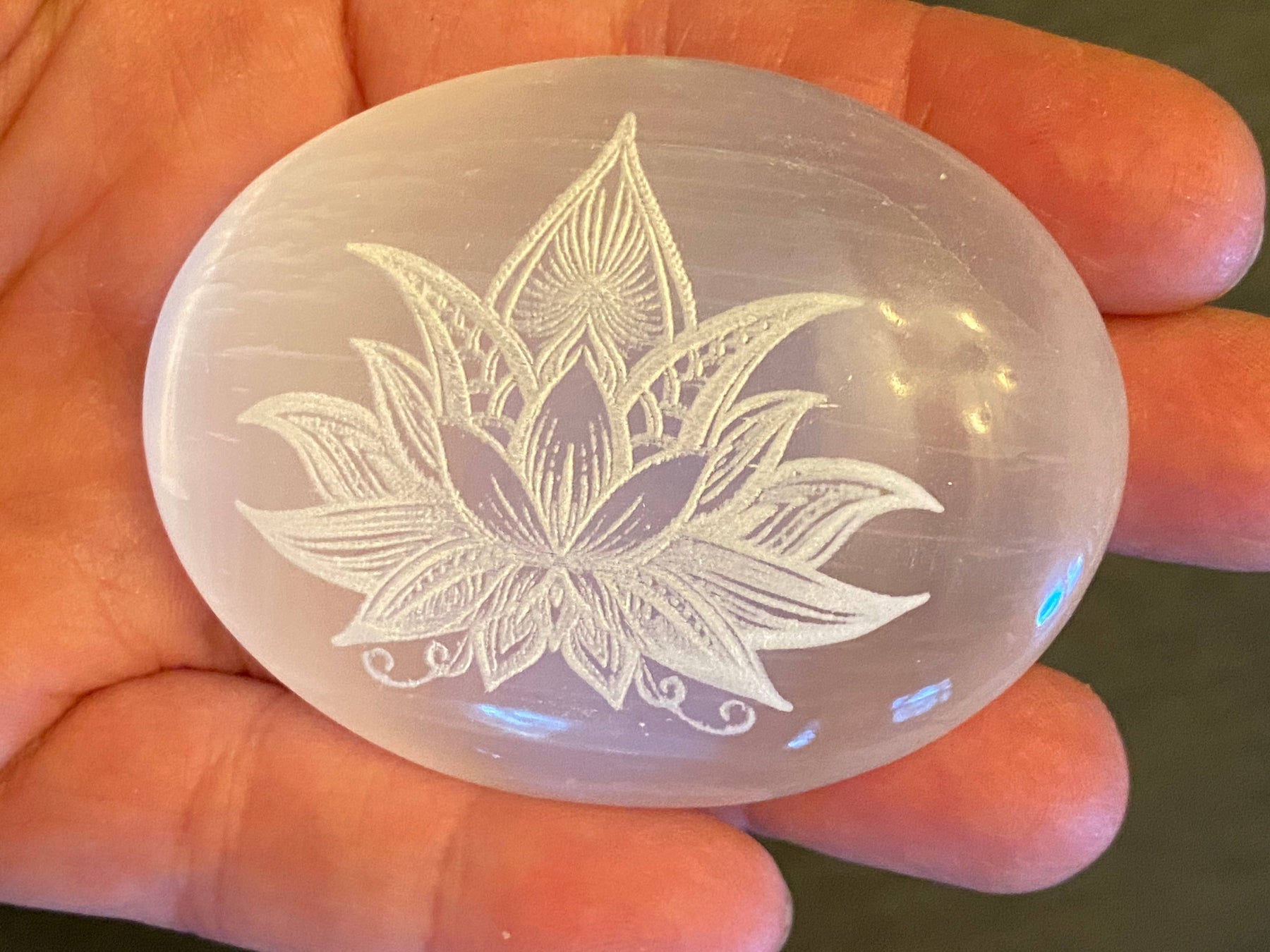 Gravierter Selenit Stein Lotusblume