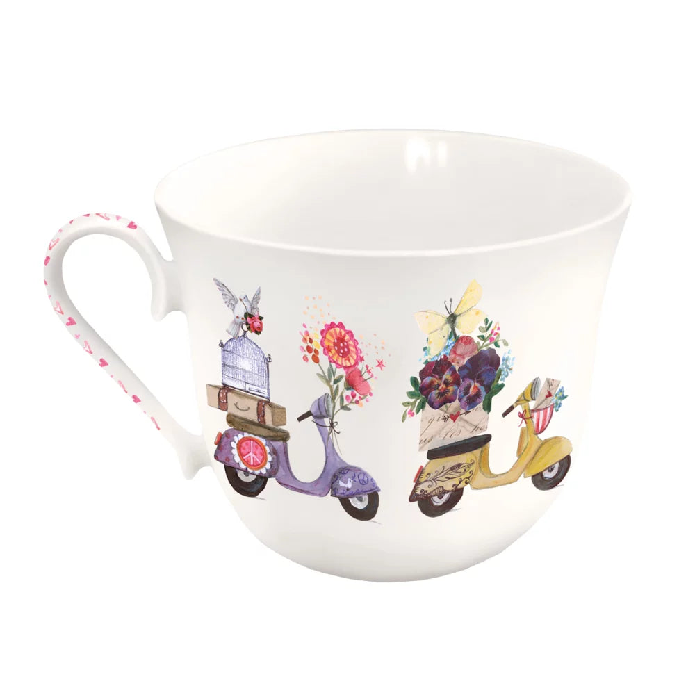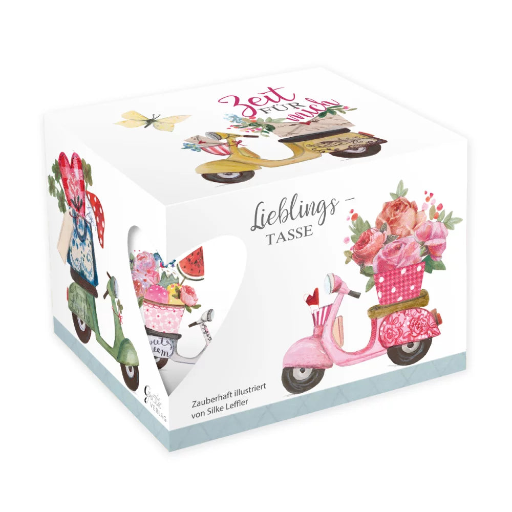 Gönn dir eine kleine Auszeit mit deiner neuen Lieblingstasse „Zeit für mich“! Die liebevoll gestalteten Vespa-Motive von Silke Leffler, beladen mit Blumen, Büchern und kleinen Alltagsfreuden, erinnern dich daran, dass das Leben eine bunte Reise ist. Diese Tasse begleitet dich perfekt bei deinen gemütlichen Tee- oder Kaffeemomenten und sorgt für ein Lächeln auf deinem Gesicht. Ob morgens zum Wachwerden oder abends zur Entspannung – diese Tasse ist wie ein kleiner Begleiter, der dich daran erinnert, dir jeden Tag Zeit für dich zu nehmen.
