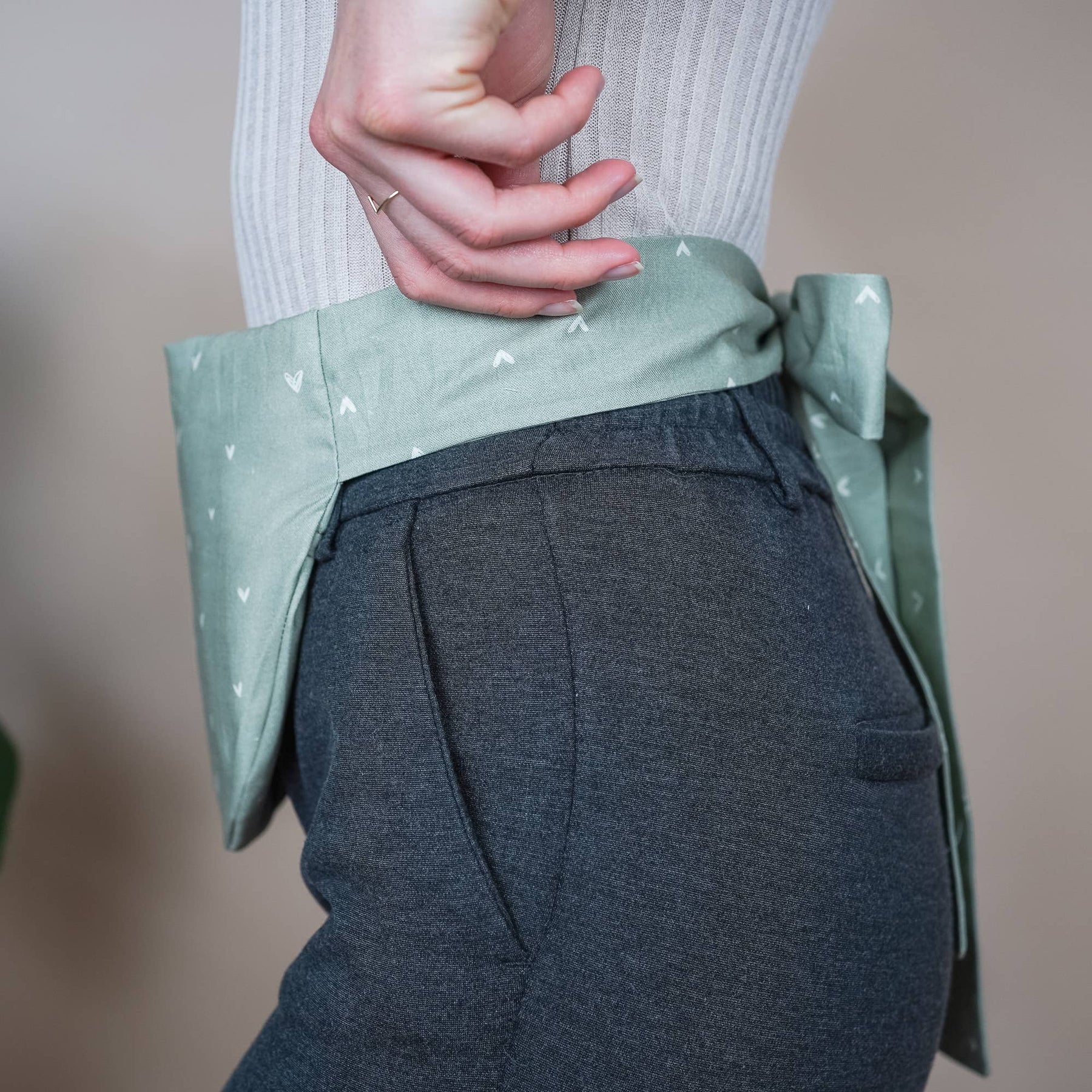 Einfach um die Taille binden und frei bewegen: beim Arbeiten im Home Office, beim Einkaufen, beim Spazierengehen oder sogar beim Yoga. Dein Bauch wird sanft umschlossen, während du dich ganz dem Leben widmen kannst.