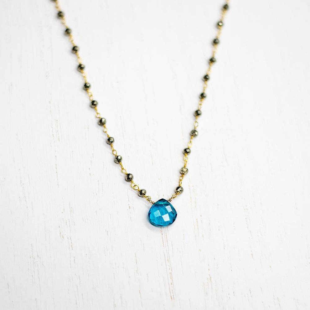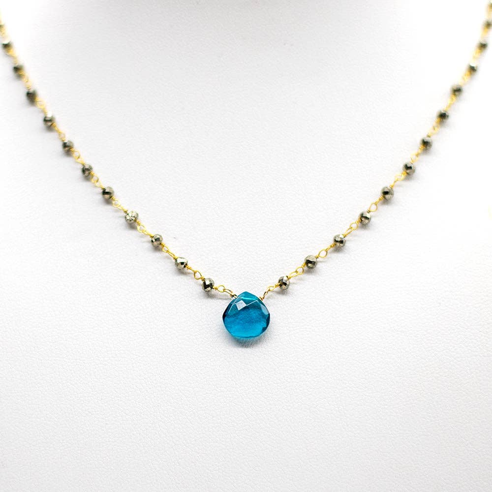 Diese wunderschöne Wasserfall-Halskette ziert ein zarter Apatit-Herzstein, der etwas farbintensiver ist und auf eine vergoldete Pyrit-Perlenkette gesetzt ist. Dem Apatit wird nachgesagt, dass er auf alle Themen, die mit Regeneration und Erneuerung zu tun haben, eine heilende Wirkung haben kann. Kettenlänge ca. 45cm